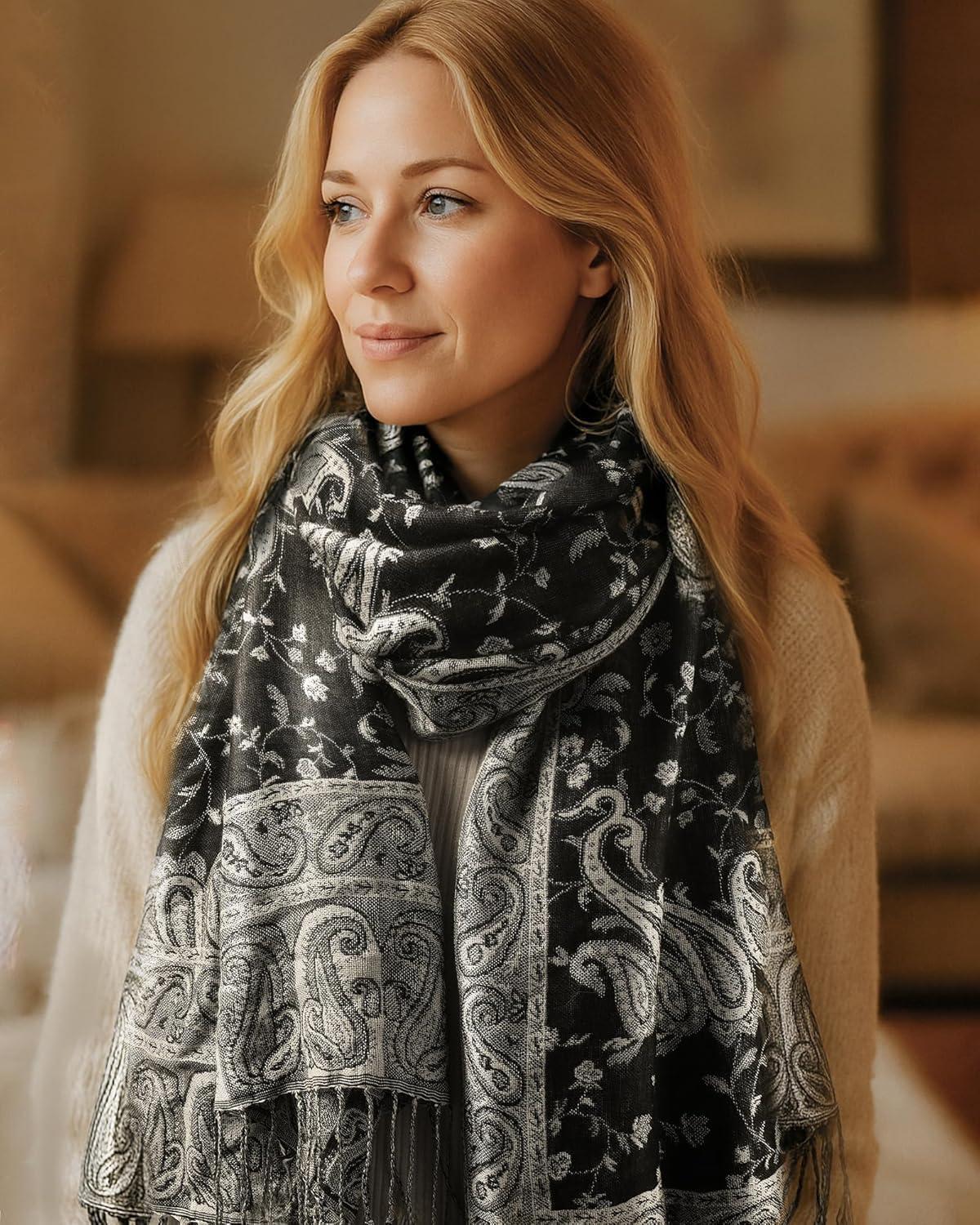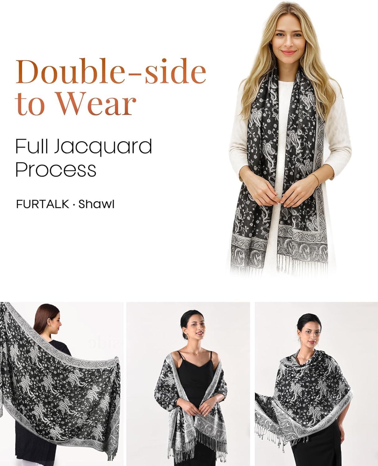Be the first to review “FURTALK Reversible Paisley Pashmina Shawl Wraps for Women Soft Exotic Indian Rave Scarf for Evening Dress Festival Scarves(Black White)”