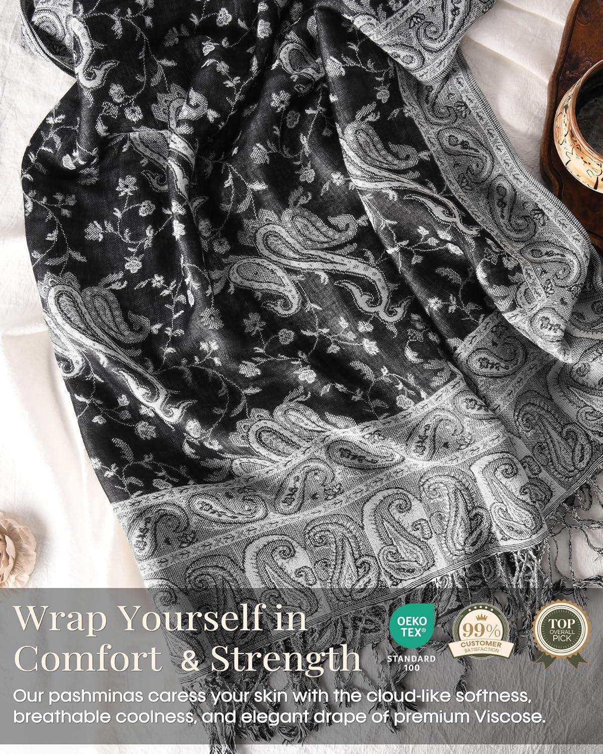 imageFURTALK Reversible Paisley Pashmina Shawl Wraps for Women Soft Exotic Indian Rave Scarf for Evening Dress Festival ScarvesBlack White