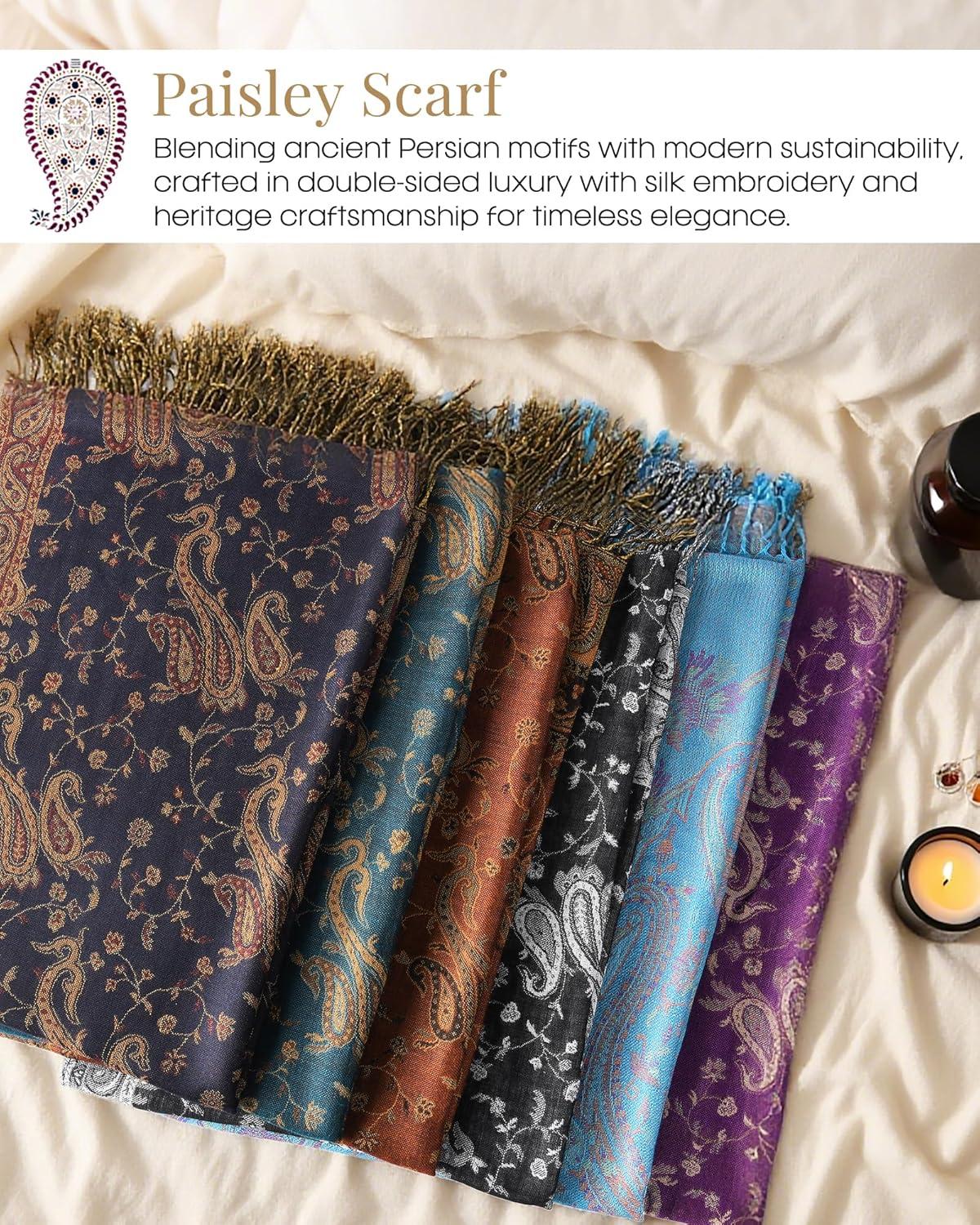 FURTALK Reversible Paisley Pashmina Shawl Wraps for Women Soft Exotic Indian Rave Scarf for Evening Dress Festival Scarves(Emerald Blue)