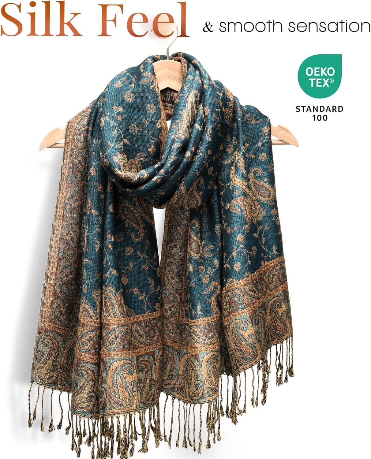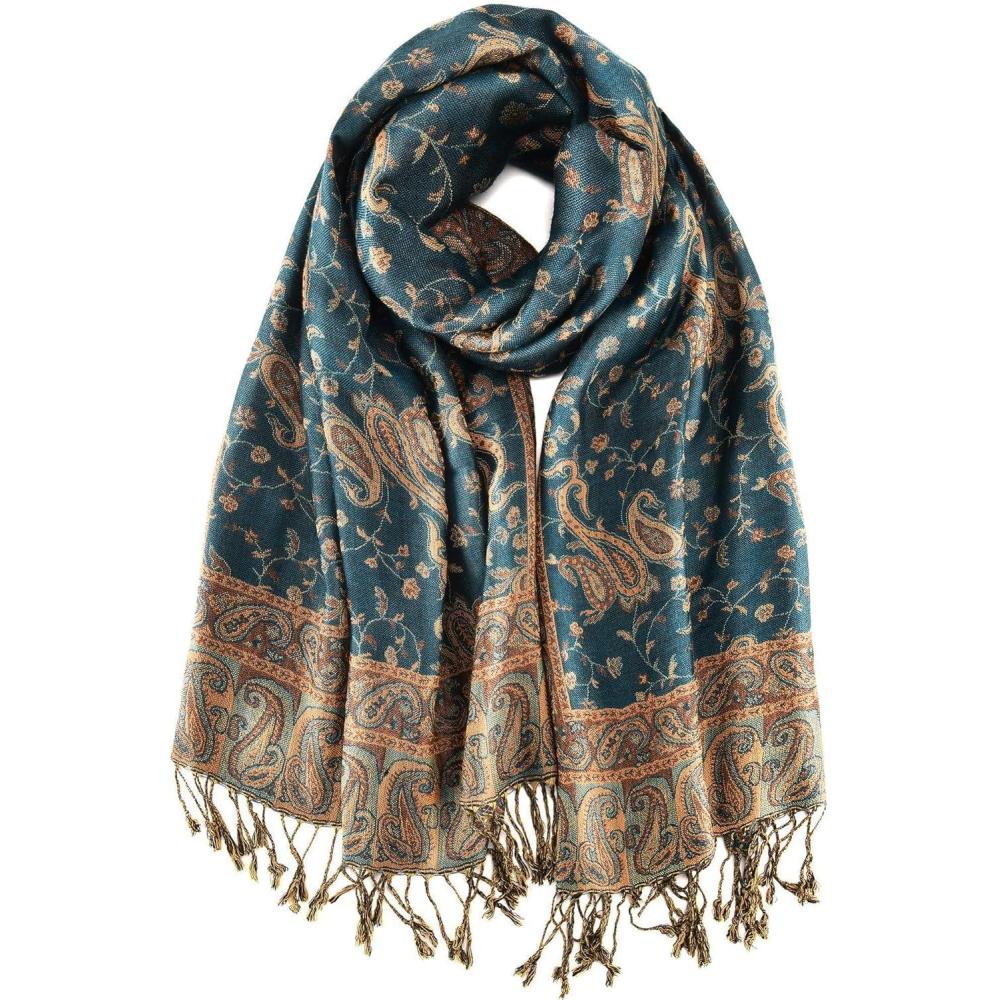 imageFURTALK Reversible Paisley Pashmina Shawl Wraps for Women Soft Exotic Indian Rave Scarf for Evening Dress Festival ScarvesEmerald Blue