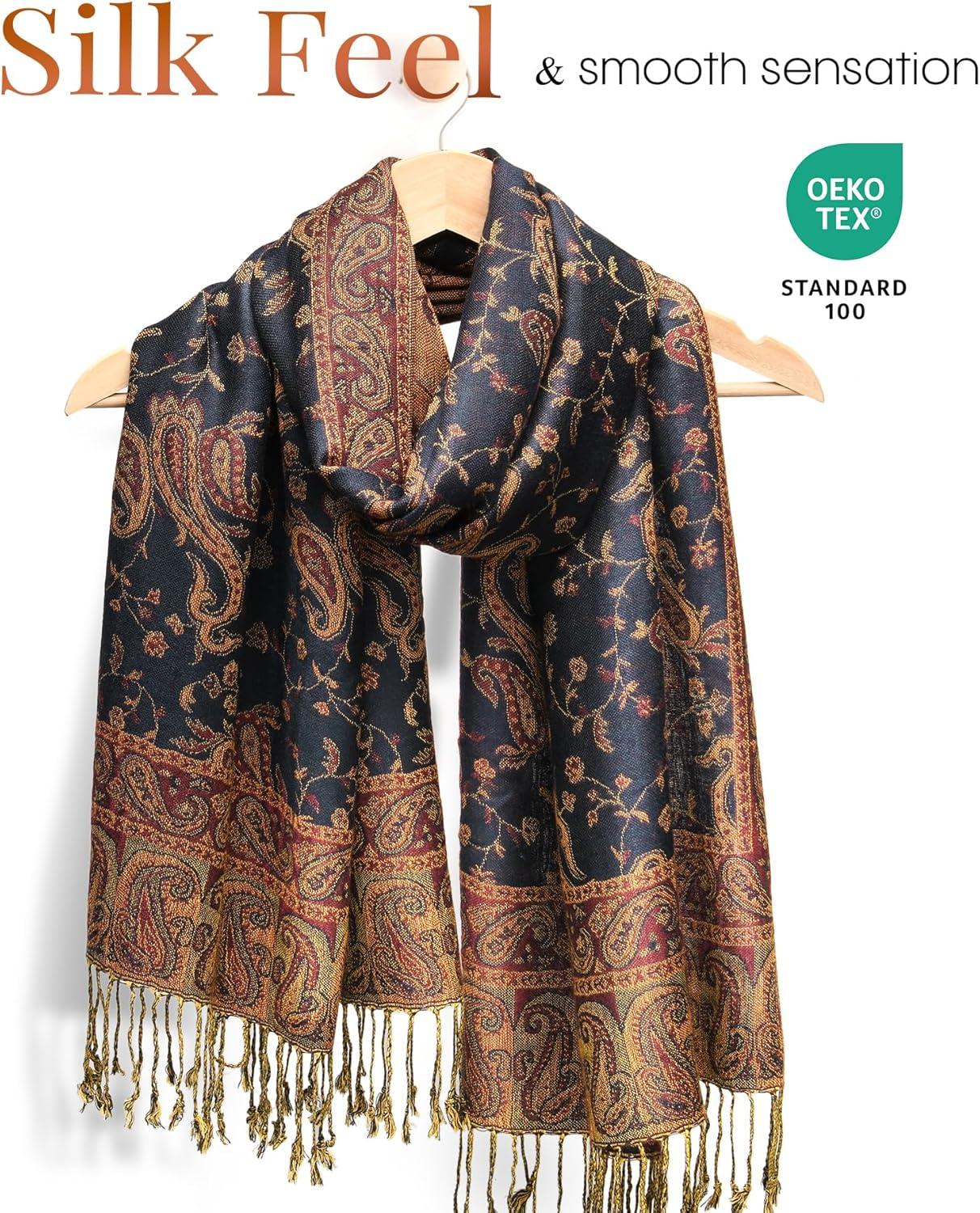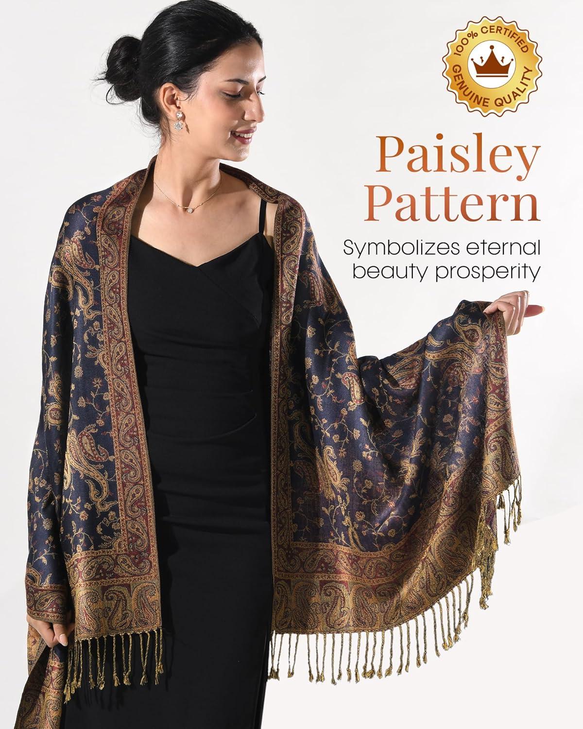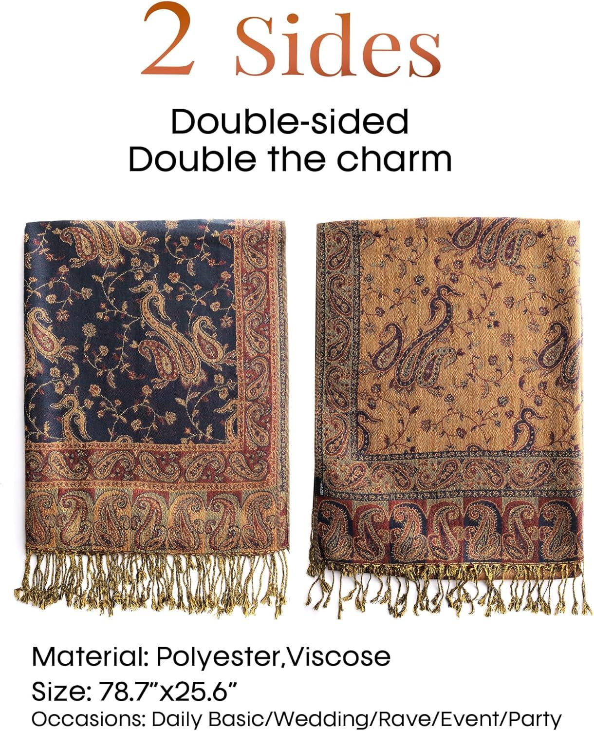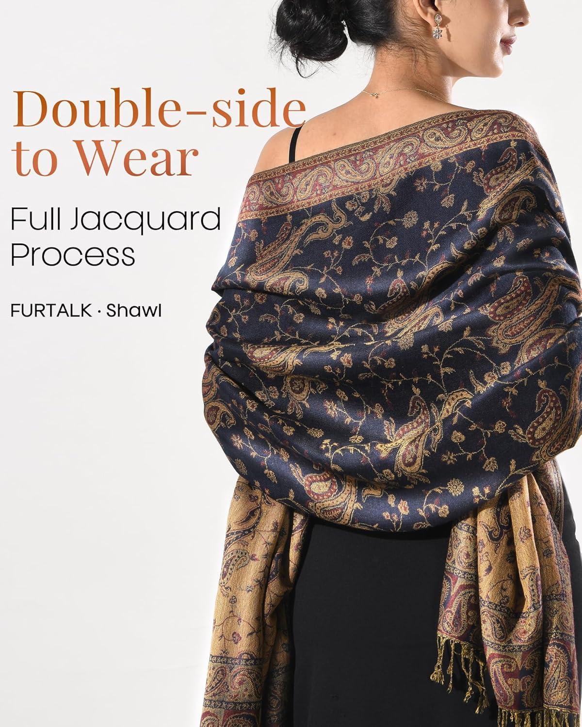 FURTALK Reversible Paisley Pashmina Shawl Wraps for Women Soft Exotic Indian Rave Scarf for Evening Dress Festival Scarves(Navy)
