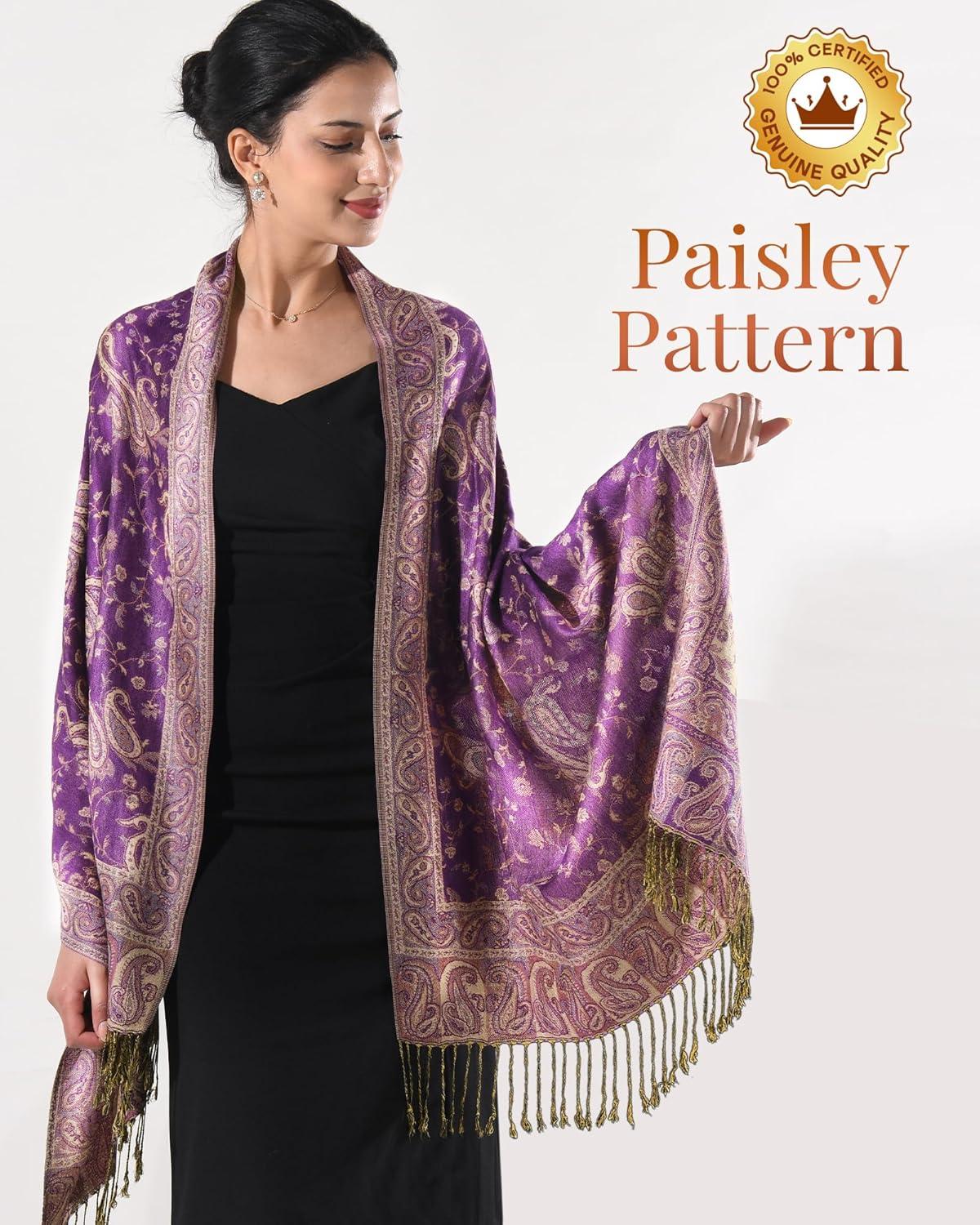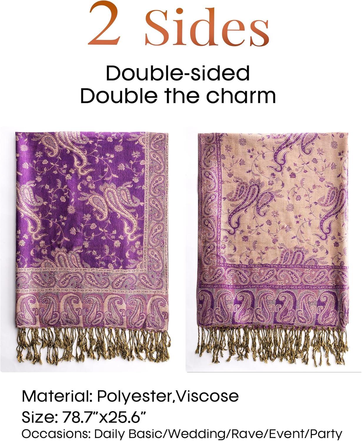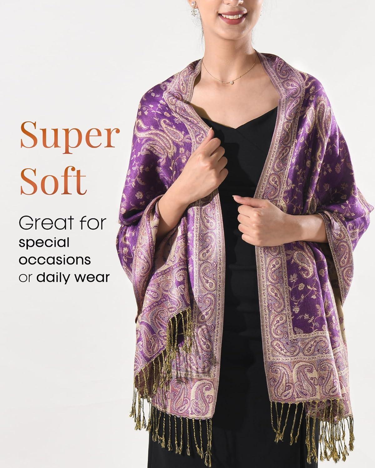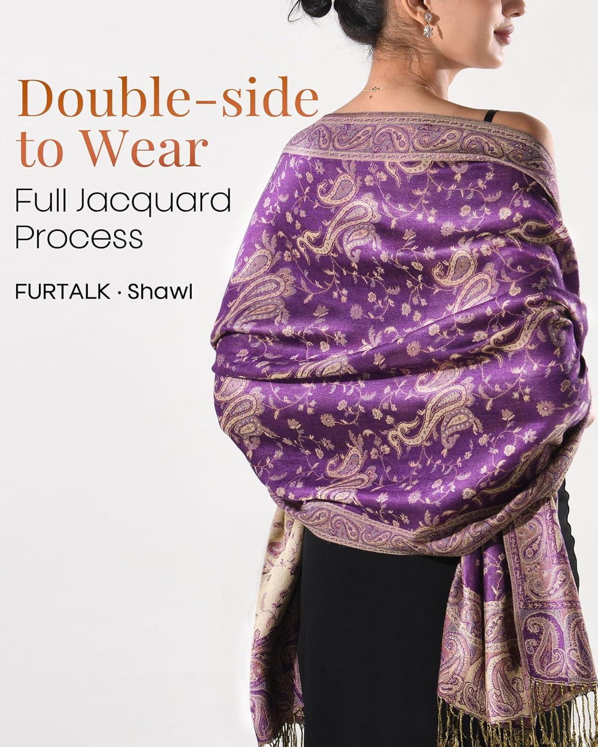 FURTALK Reversible Paisley Pashmina Shawl Wraps for Women Soft Exotic Indian Rave Scarf for Evening Dress Festival Scarves(Violet)