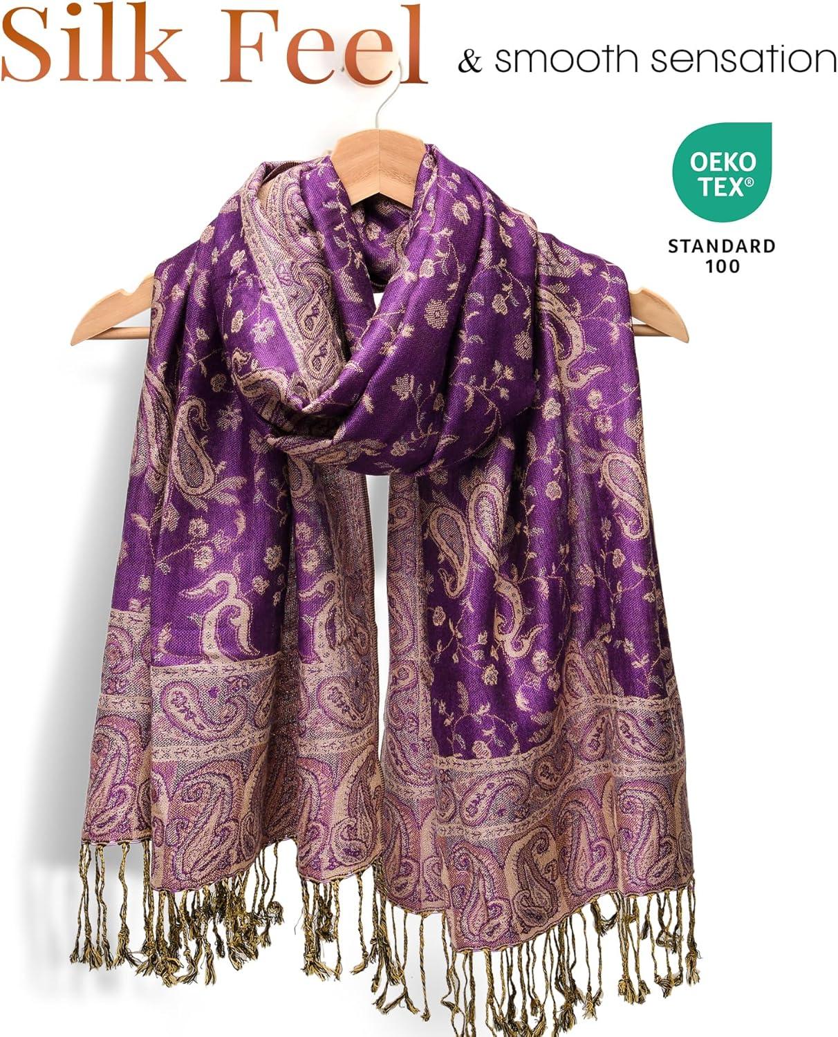 imageFURTALK Reversible Paisley Pashmina Shawl Wraps for Women Soft Exotic Indian Rave Scarf for Evening Dress Festival ScarvesViolet