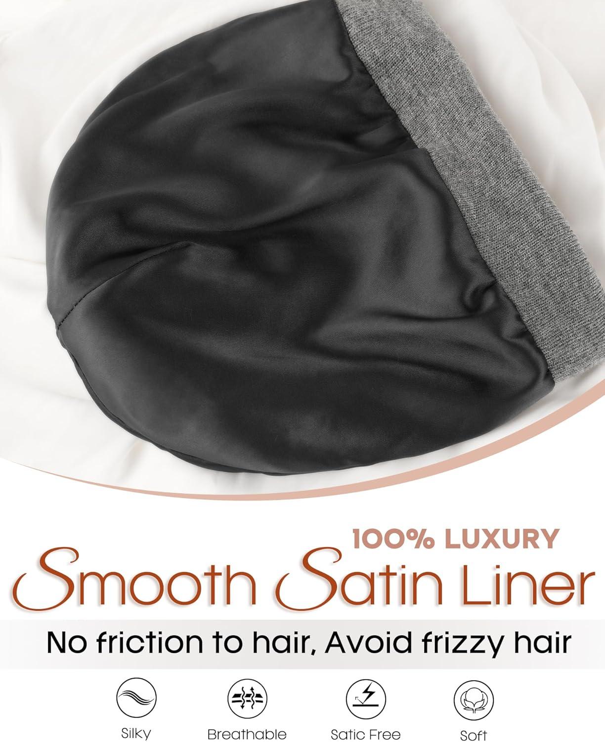 imageFURTALK Satin Lined Beanie for Women Men Knit Beanie Hat Acrylic Winter Hats Warm Slouchy Skull CapDark Grey