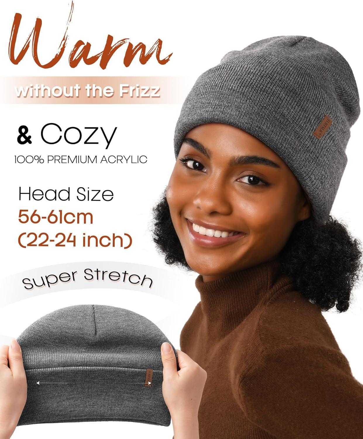 FURTALK Satin Lined Beanie for Women Men Knit Beanie Hat Acrylic Winter Hats Warm Slouchy Skull Cap(Dark Grey)