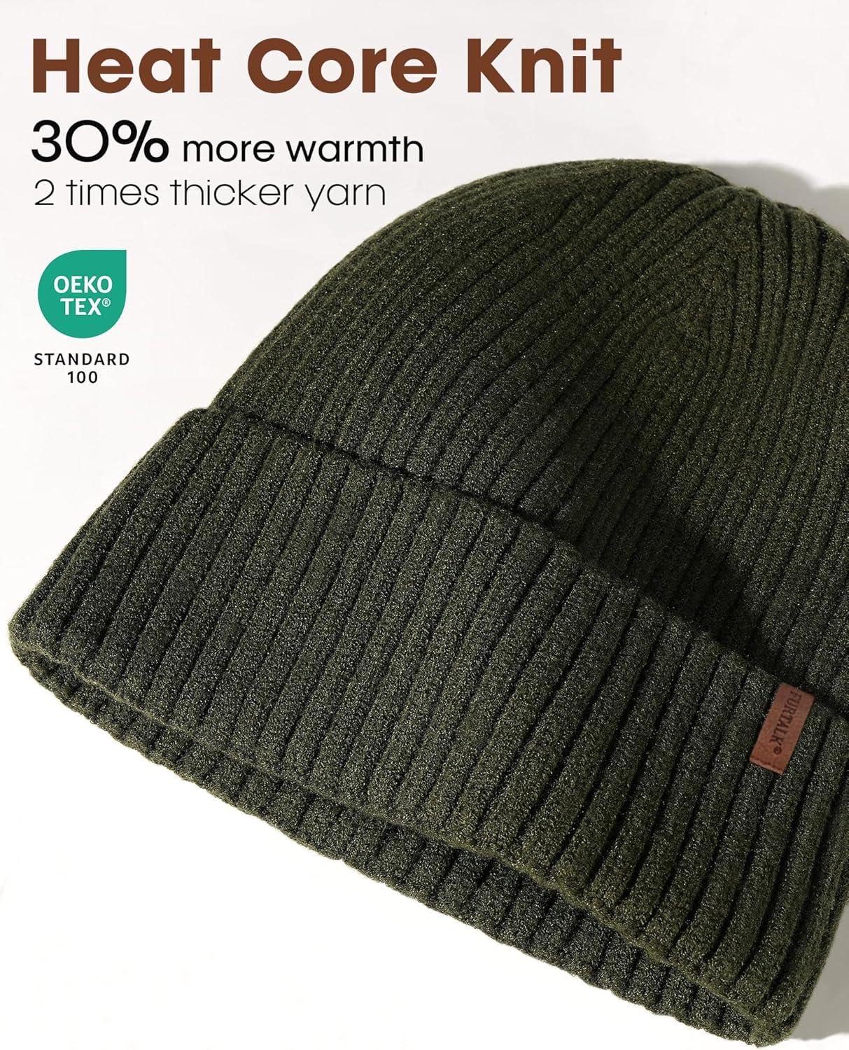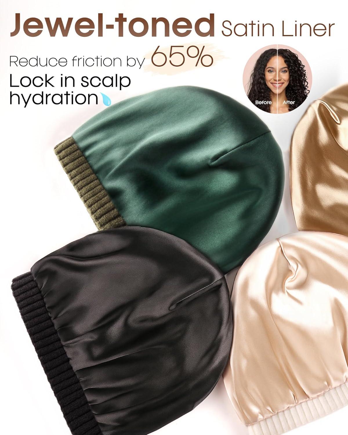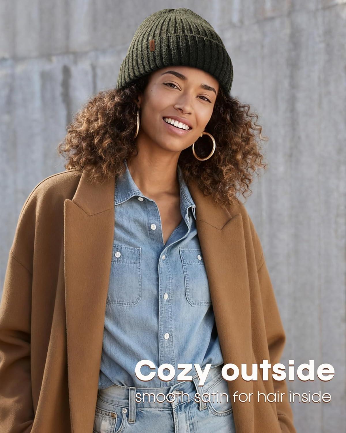 imageFURTALK Satin Lined Knit Beanie for Men Women Winter Hats Silk Lining Slouchy Warm Cuffed CapGreen