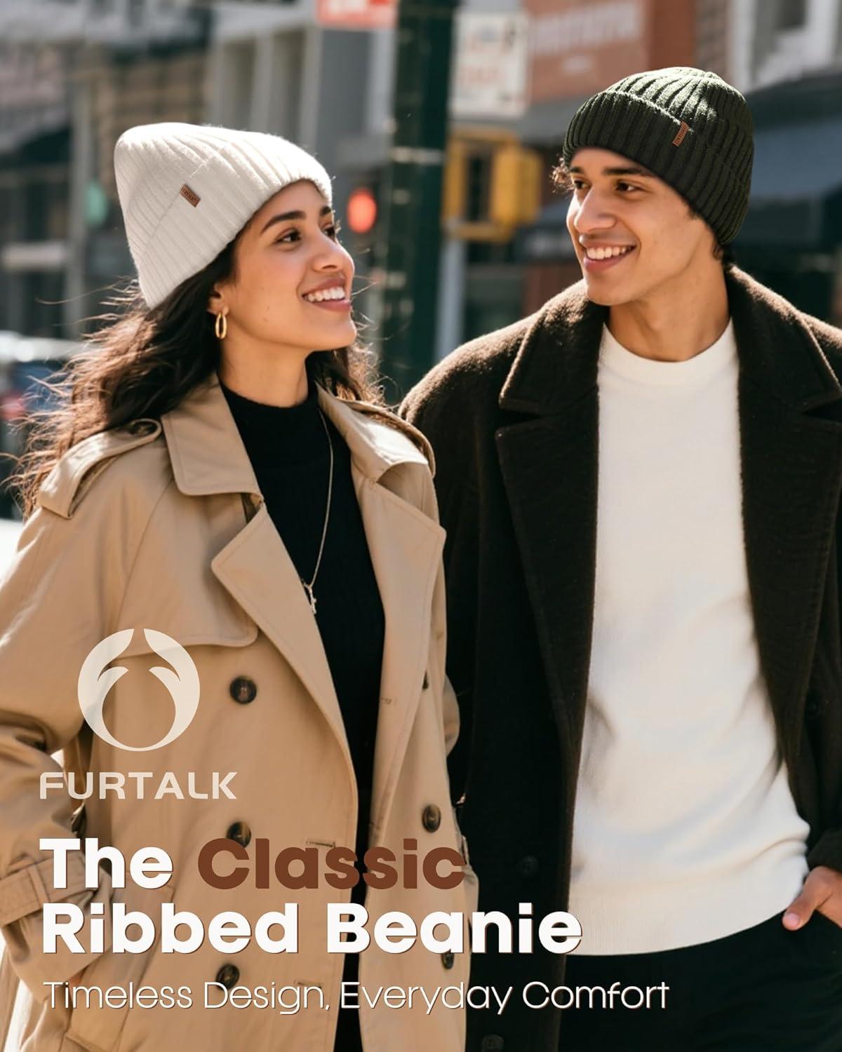 FURTALK Winter Beanie Hats for Men Women Warm Fleece Lined Double Layer Skull Cap Unisex Soft Slouchy Beanie(Black-grey Mixed)