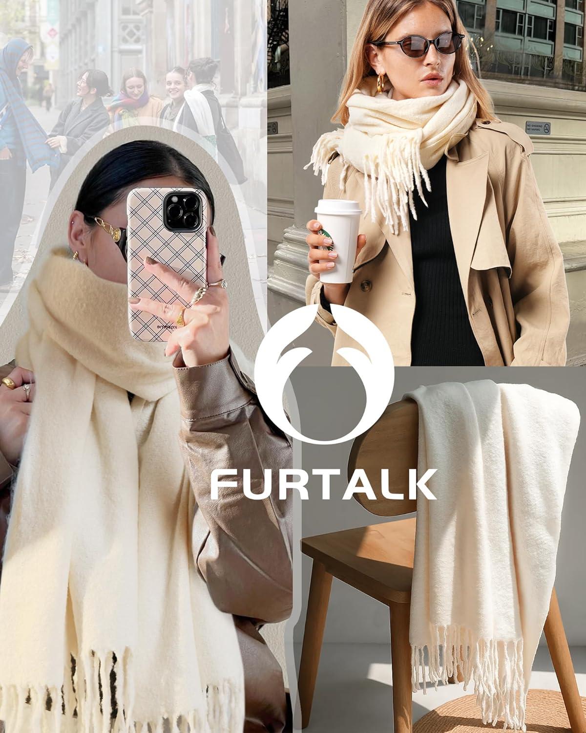 FURTALK Scarf for Women Men Soft Warm Cashmere Feel Blanket Scarf Pashmina Shawl Winter Thick Womens Scarves(Cream)