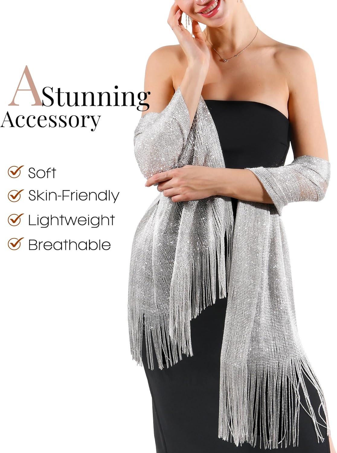 FURTALK Shawl Wraps for Women Silver Shawls and Wraps for Evening Dresses Sparkling Wedding Party Shawl Gift(Silver)