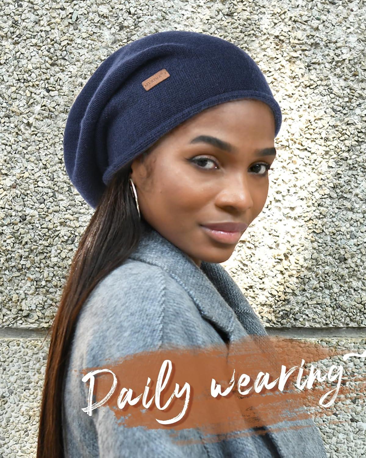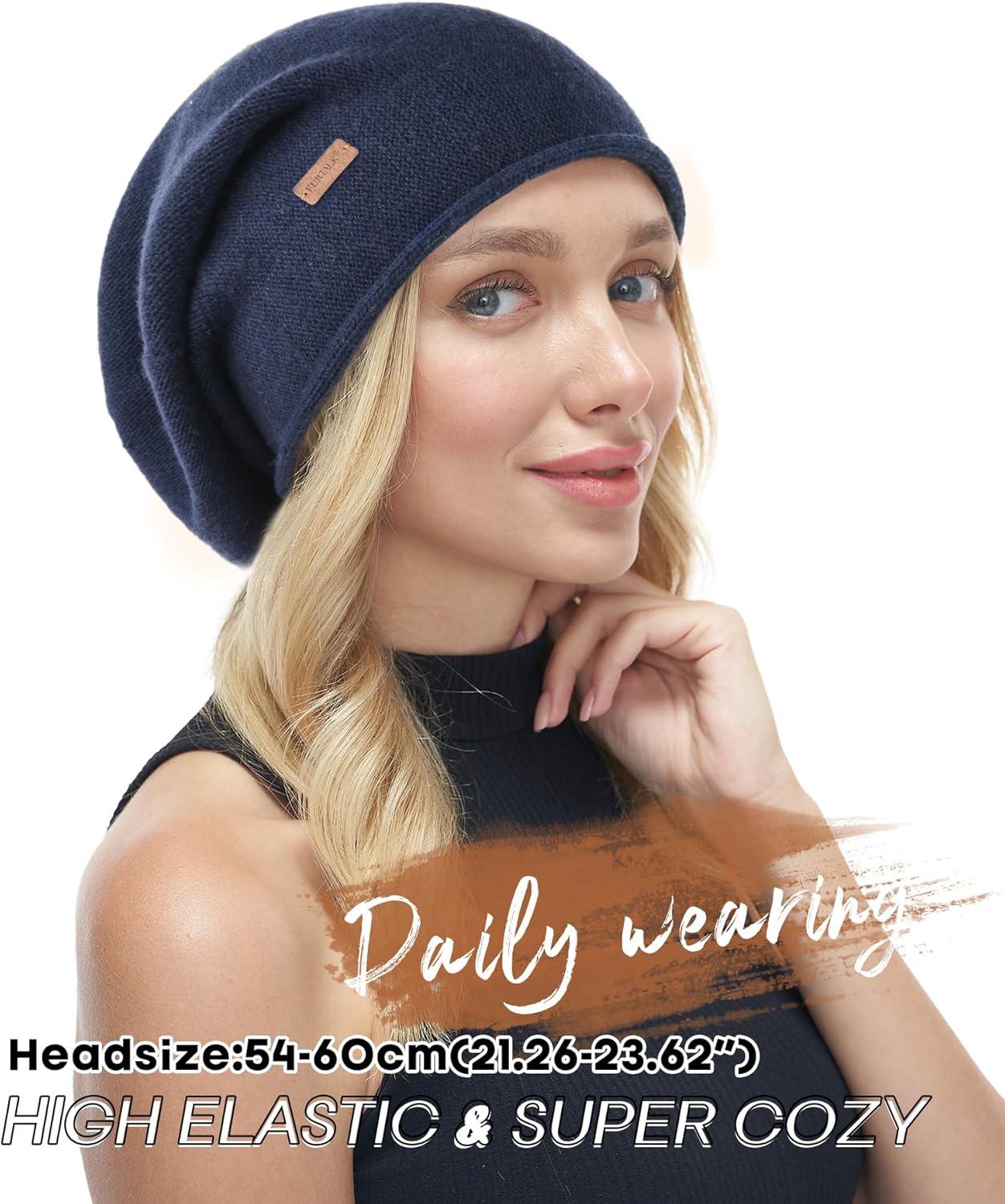 FURTALK Slouchy Beanies for Women Winter Hats Soft Warm Beanie Hat Ladies Knitting Skull Beanies(Navy)
