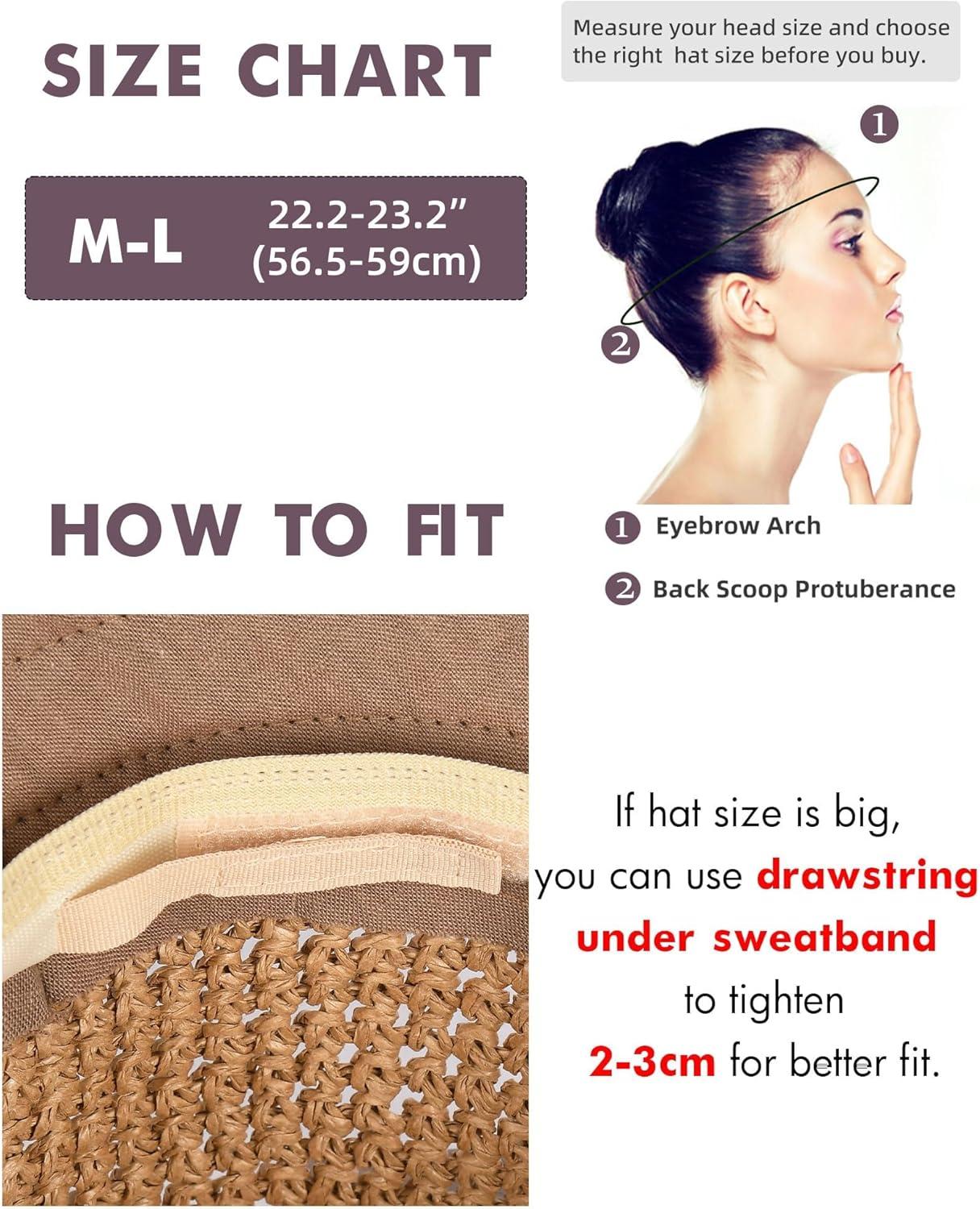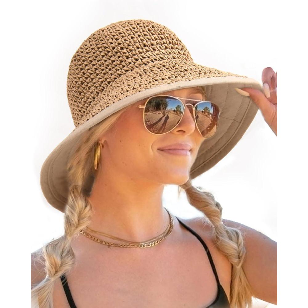 FURTALK Summer Straw Beach Sun Hats for Women UPF 50 Floppy Wide Brim Travel Bucket Hat Foldable Packable(Khaki)