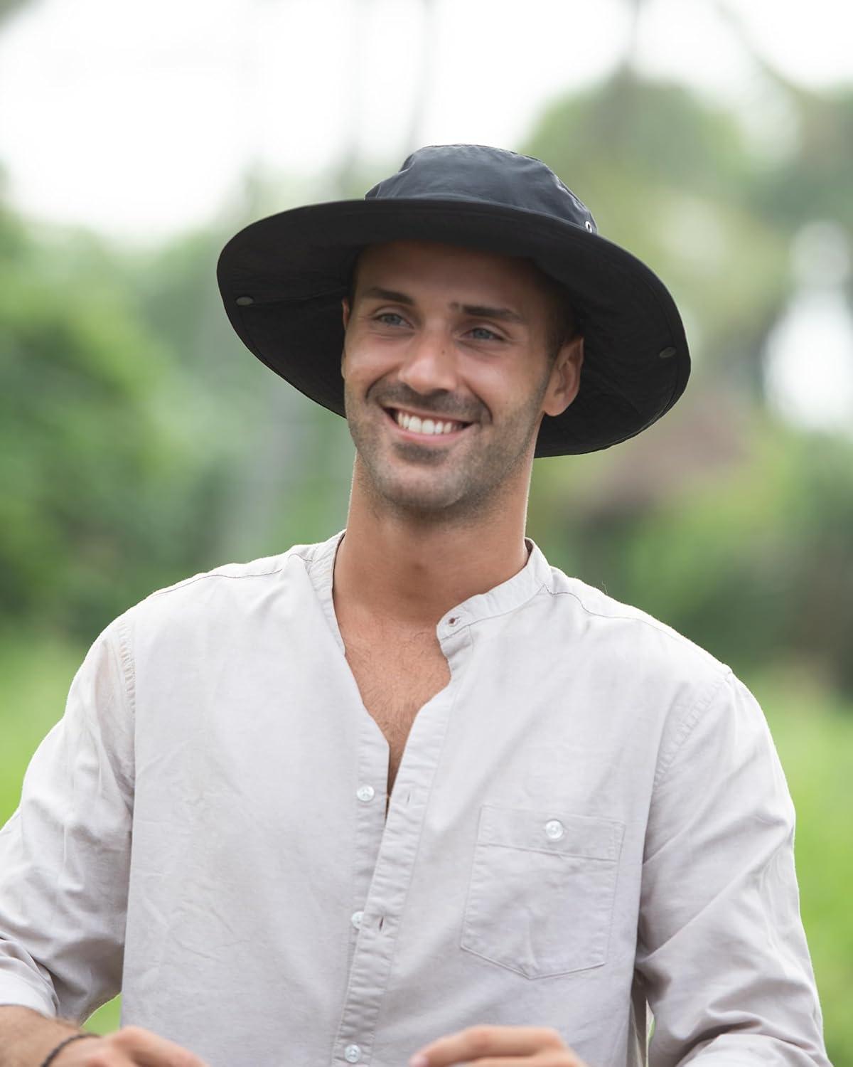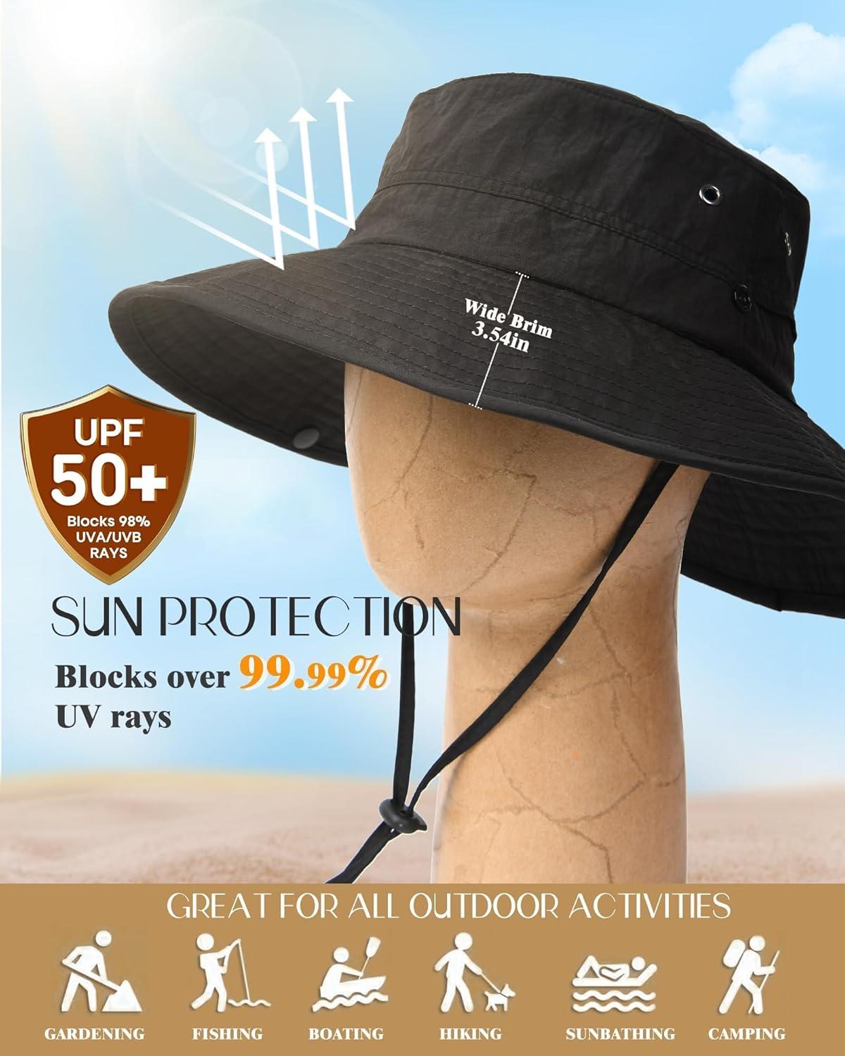 FURTALK Sun Hats for Women Ponytail UPF 50+ Beach Summer Hat Wide Brim Packable Cowboy Hat(Pure Black)