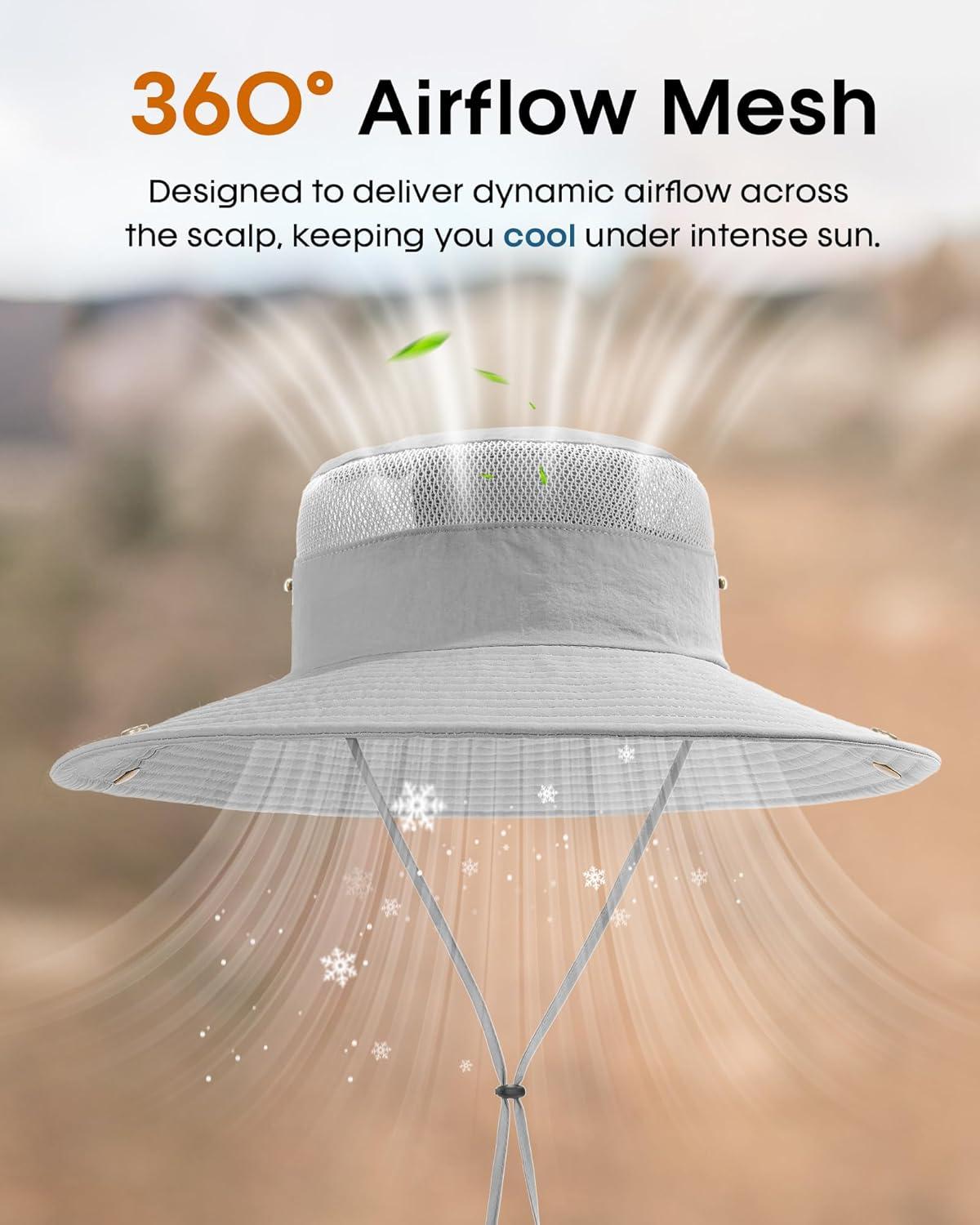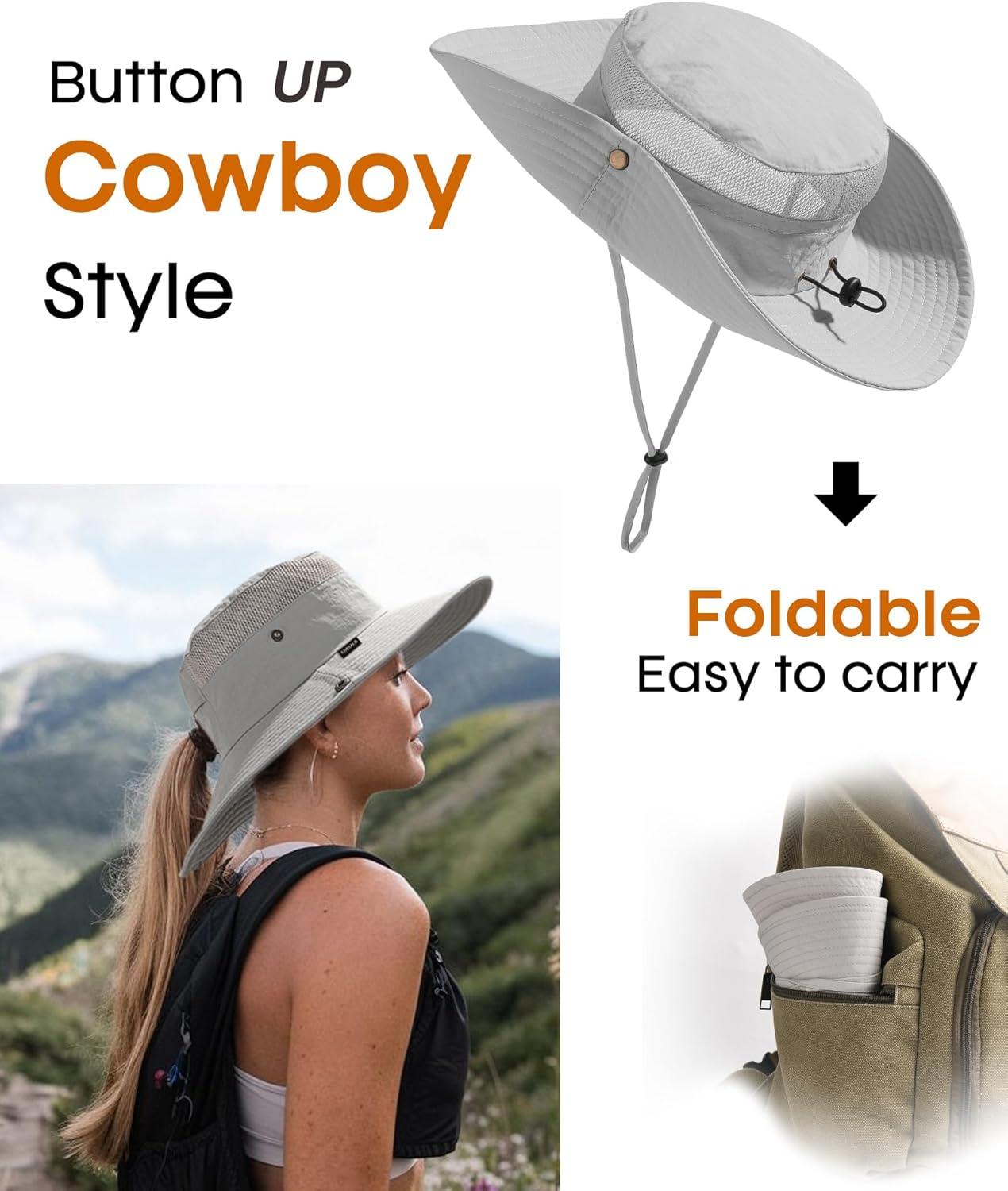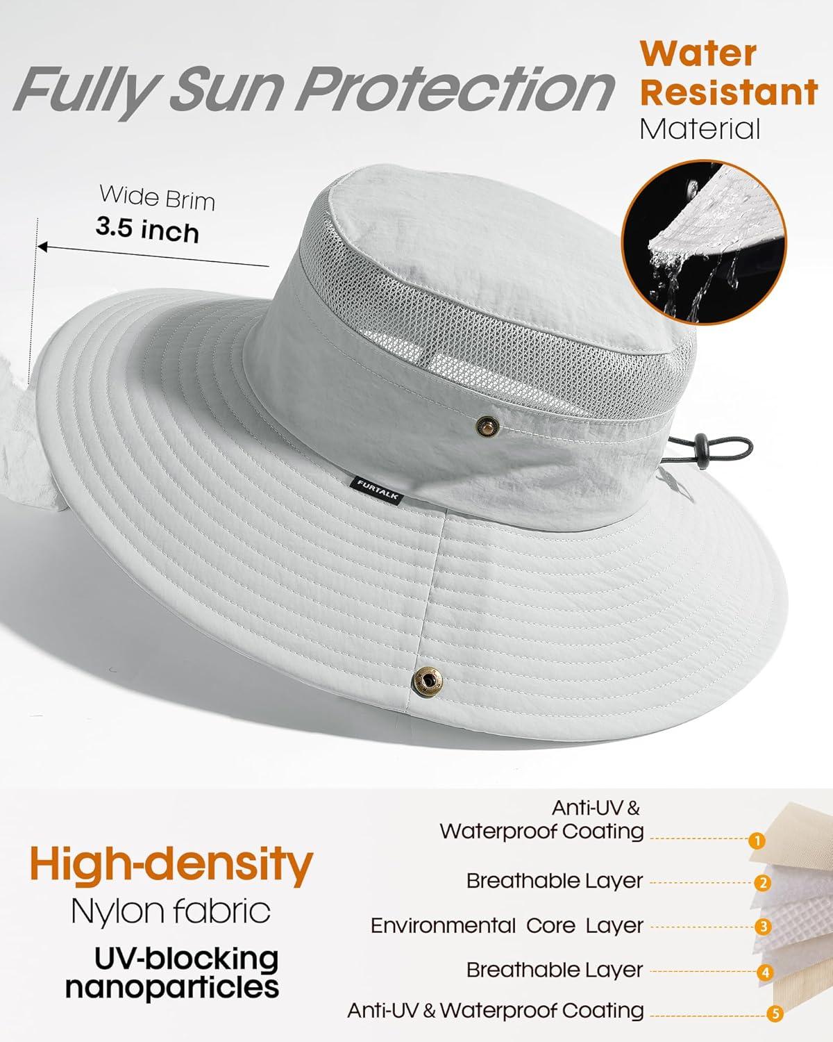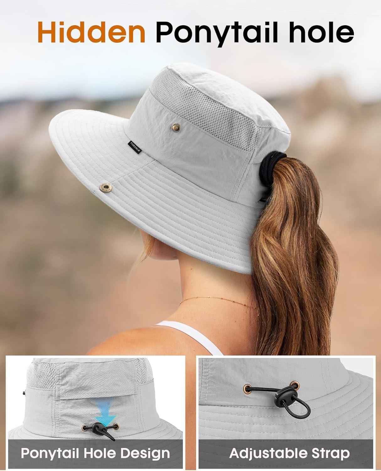 FURTALK Sun Hats for Women with Ponytail Hole Beach Hiking Summer Wide Brim Outdoor UV Protection Packable Bucket Safari Hat(Grey)