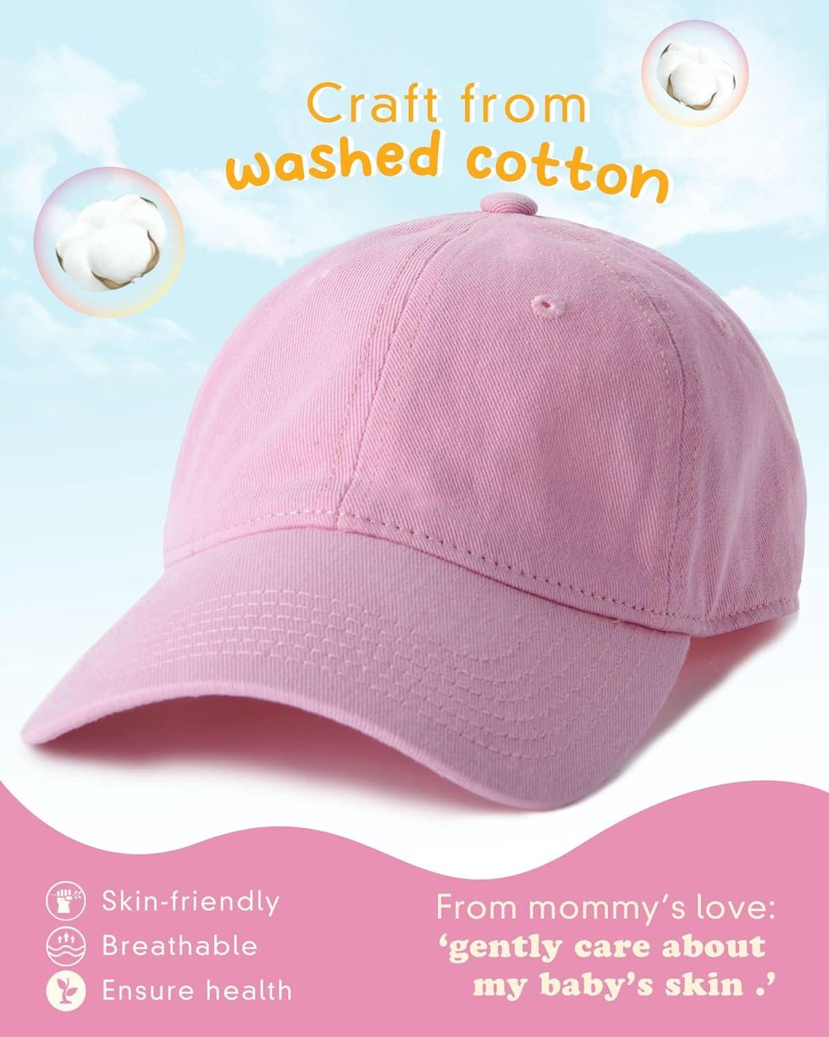 FURTALK Toddler Baseball Hat Kids Boys Girls Adjustable Washed Cotton Baseball Cap with Ponytail(Beige+pink)