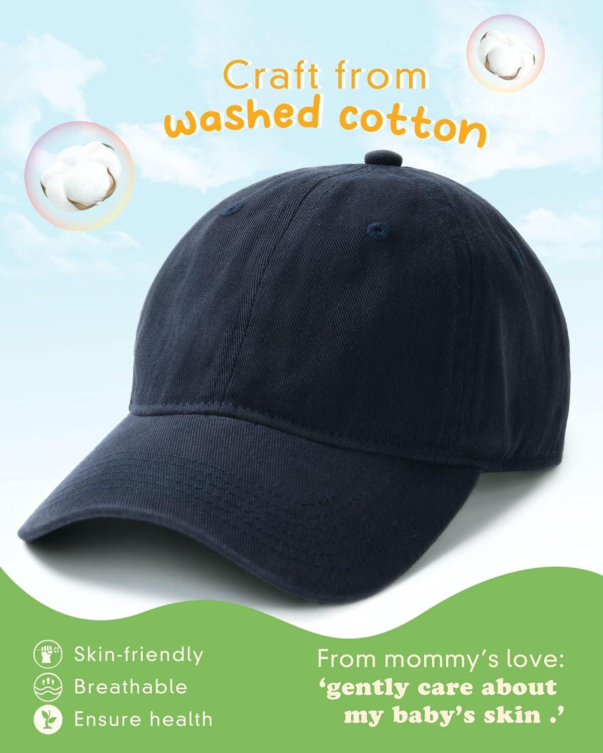 imageFURTALK Toddler Baseball Hat Kids Boys Girls Adjustable Washed Cotton Baseball Cap with PonytailGreynavy