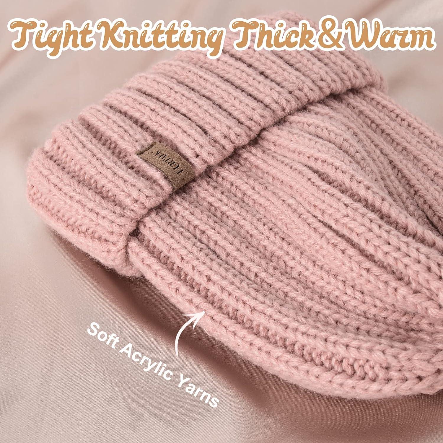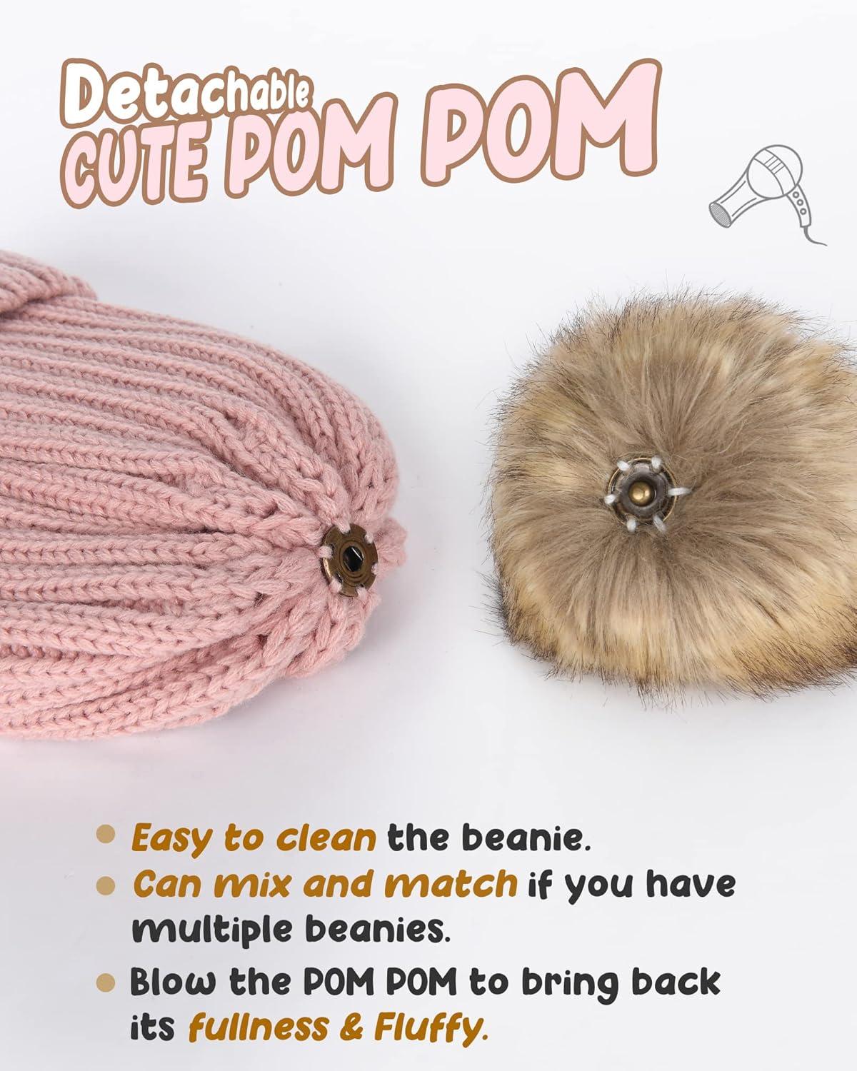FURTALK Toddler Beanie Satin Lined Baby Boys Girls Winter Hats Pom Pom Beanies for Kids(Pink)