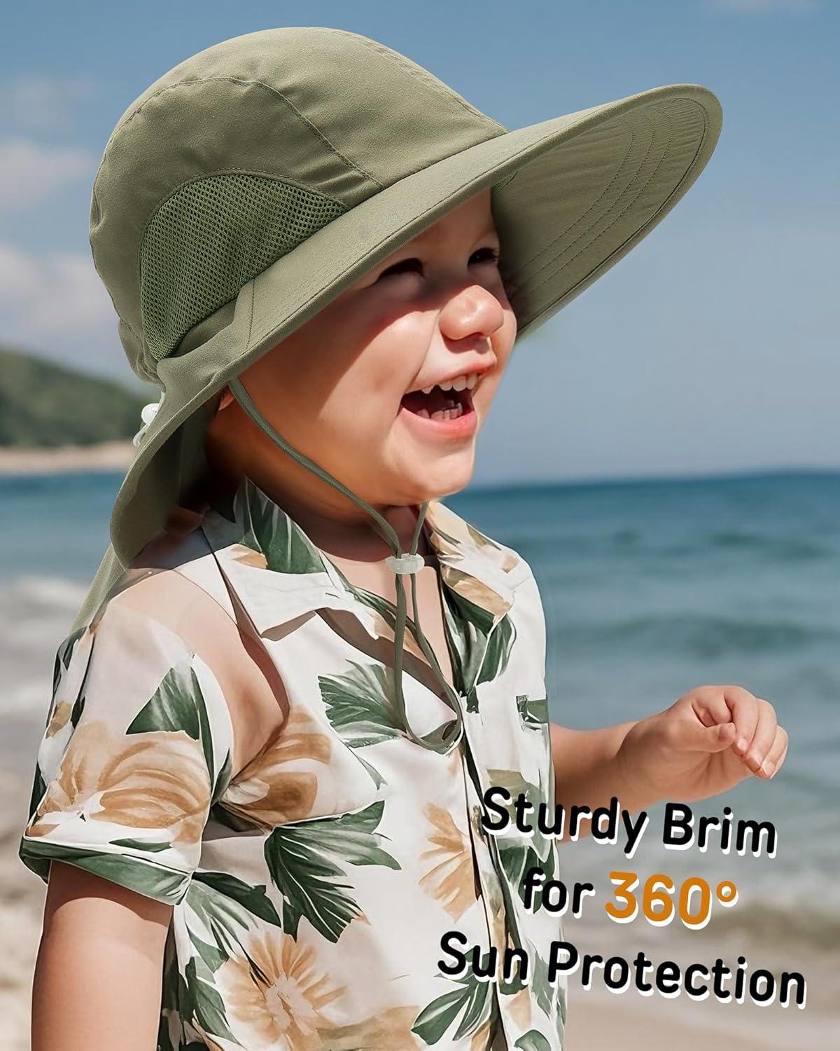 FURTALK Toddler Kids Sun Hat UPF 50+ Sun Protective Bucket Hat for Baby Summer Beach Hats(Grey+green)