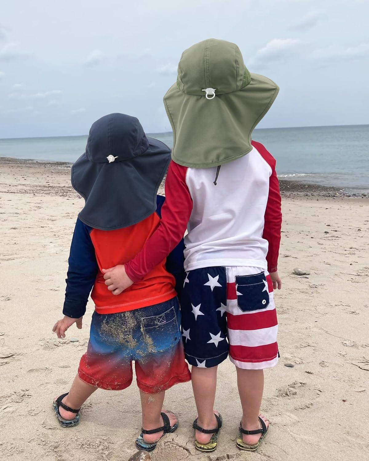 FURTALK Toddler Kids Sun Hat UPF 50+ Sun Protective Bucket Hat for Baby Summer Beach Hats(Grey+navy)