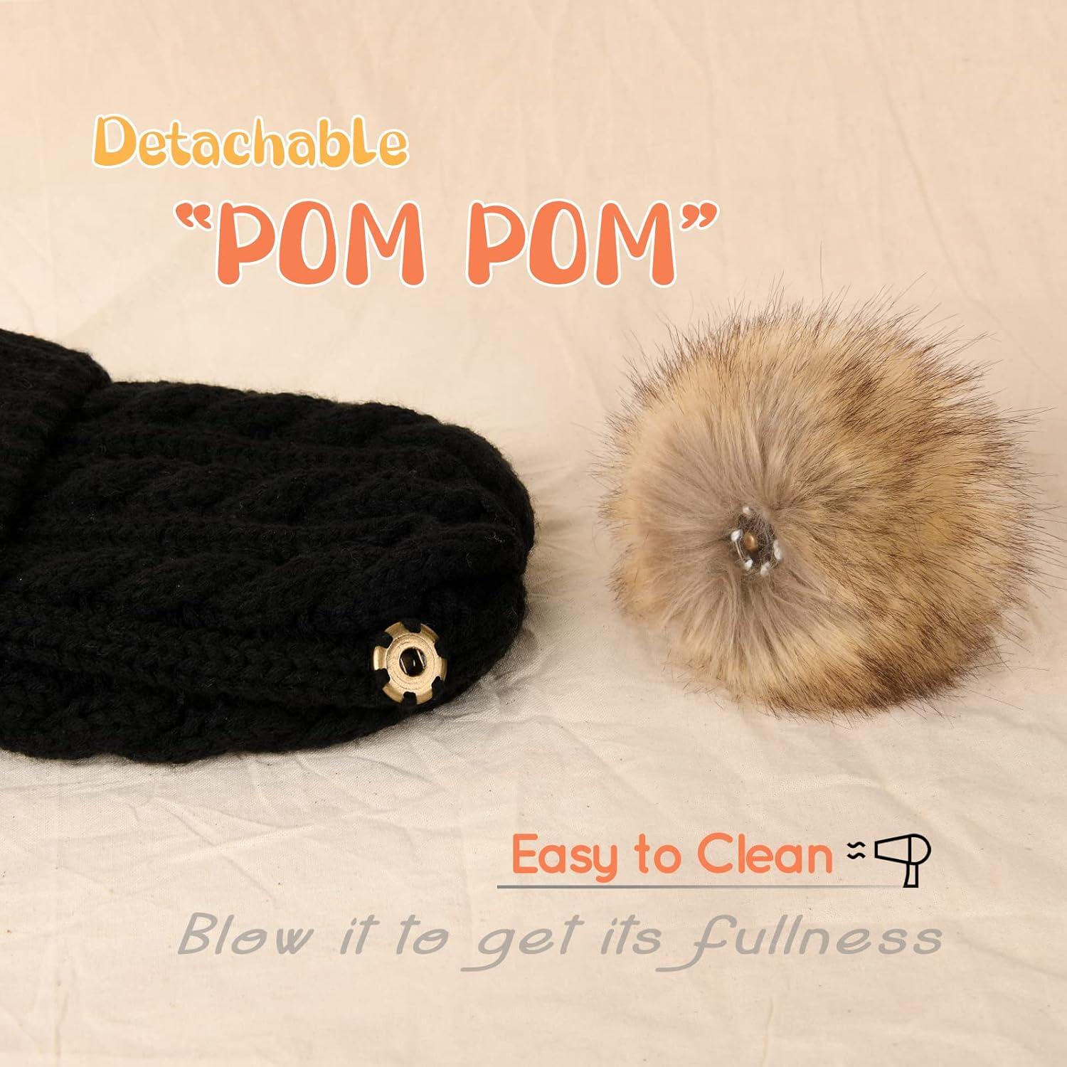 FURTALK Toddler Warm Winter Hat Kids Baby Knitted Soft Beanie with Double Faux Fur Pom Poms for Girls Boys(Black With Black Pom)
