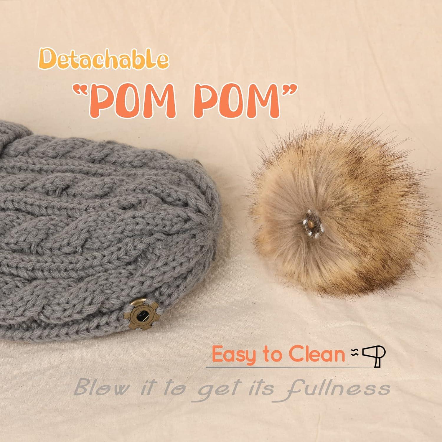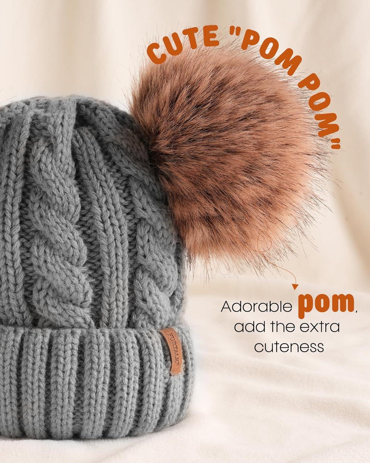 FURTALK Toddler Warm Winter Hat Kids Baby Knitted Soft Beanie with Double Faux Fur Pom Poms for Girls Boys(Grey)