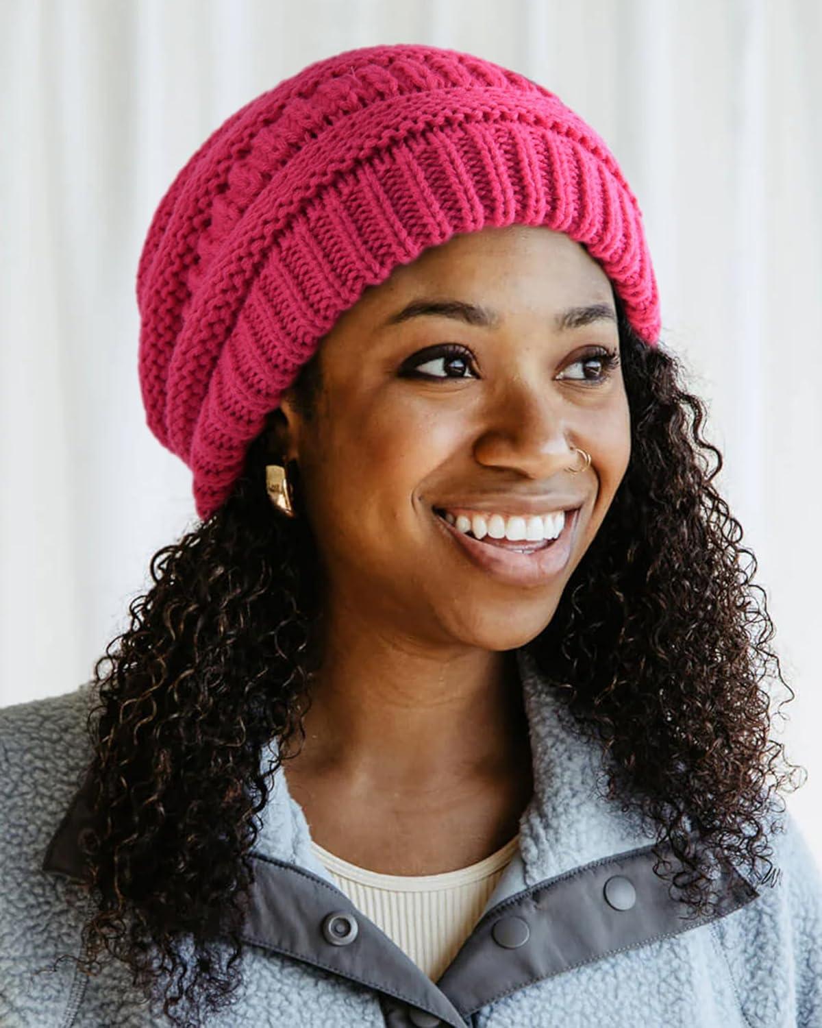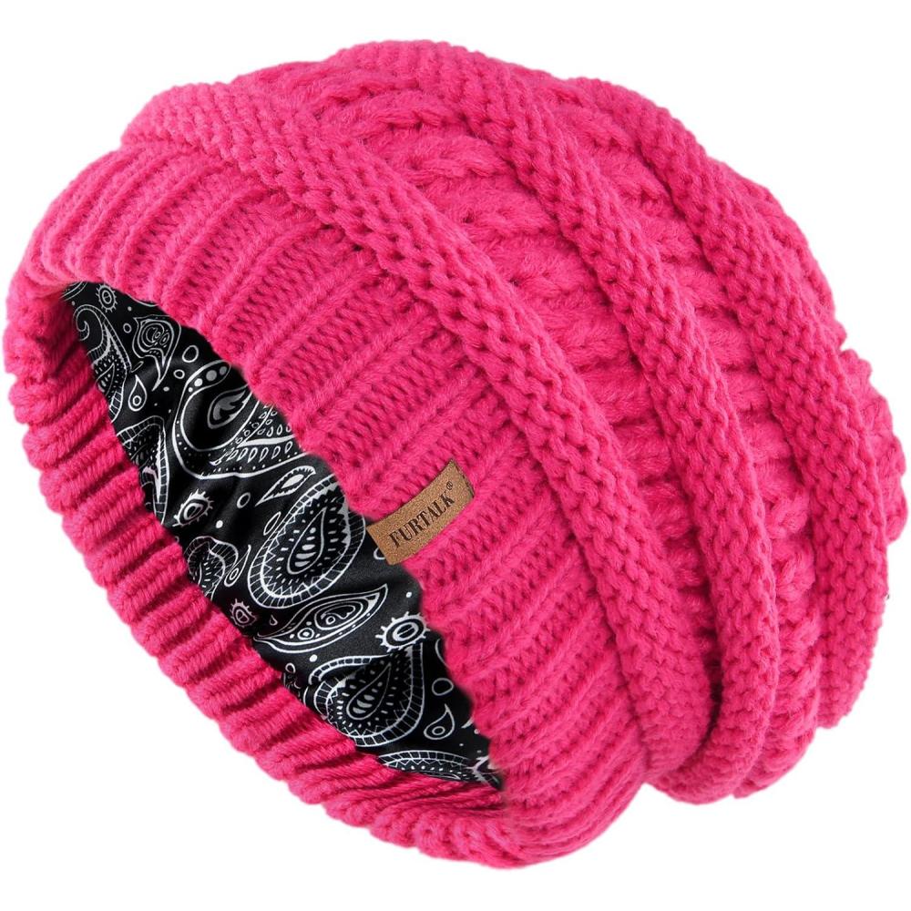 FURTALK Winter Beanie Hat for Women Satin Lined Cable Knit Chunky Slouchy Beanies Skull Warm Cap(Rose)