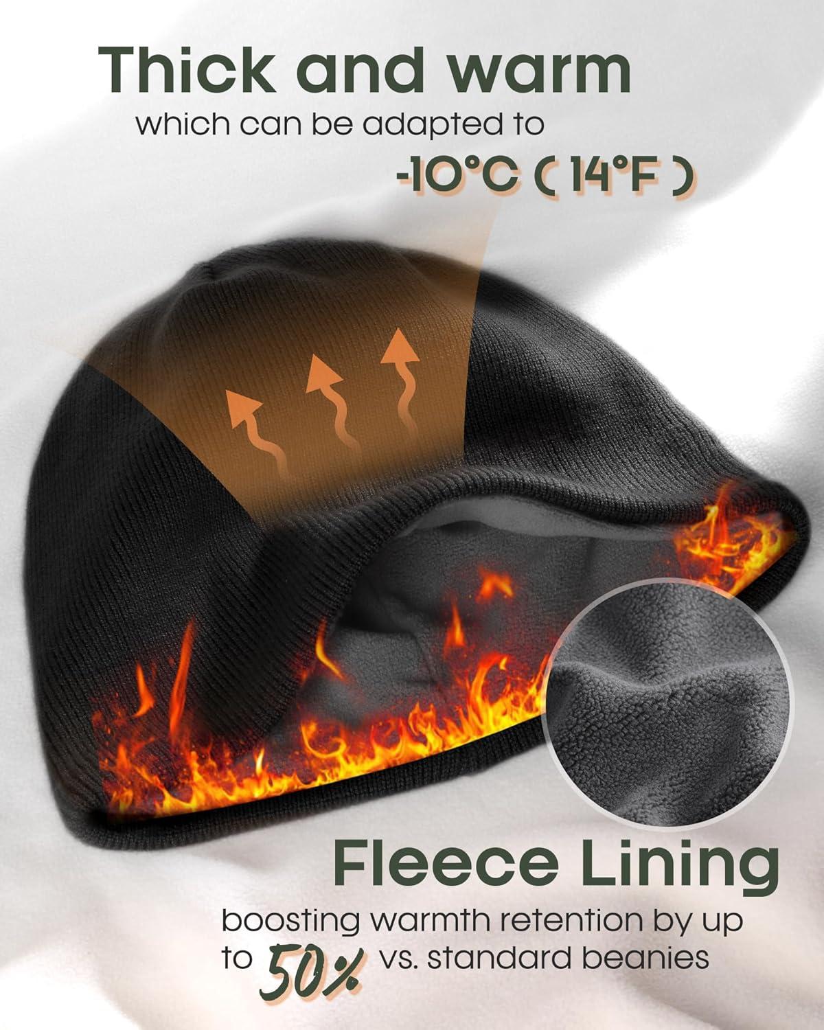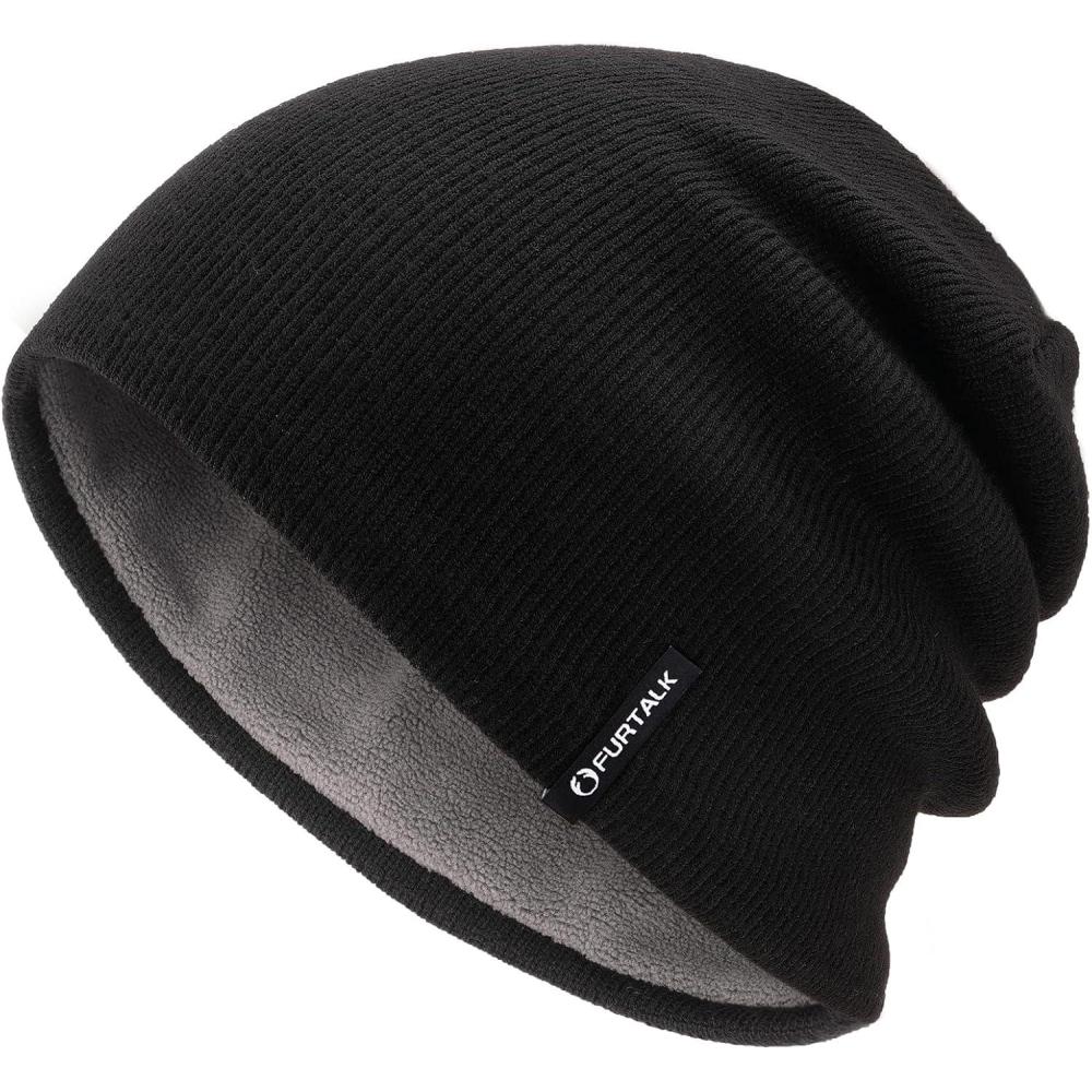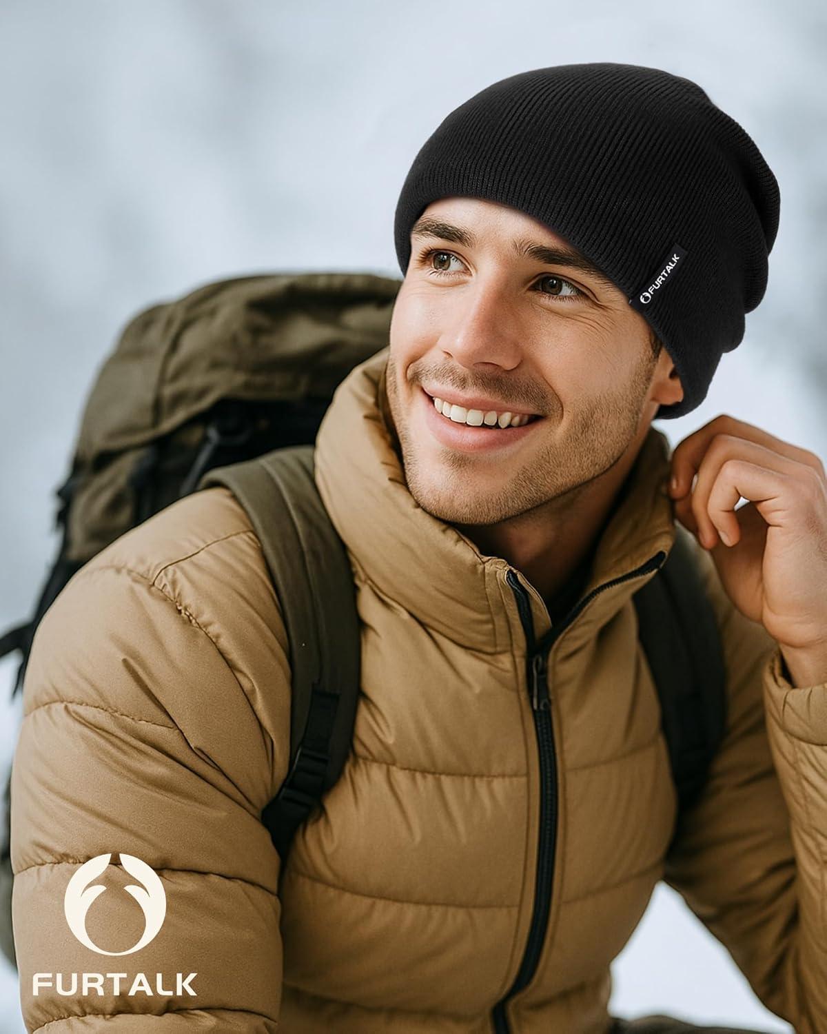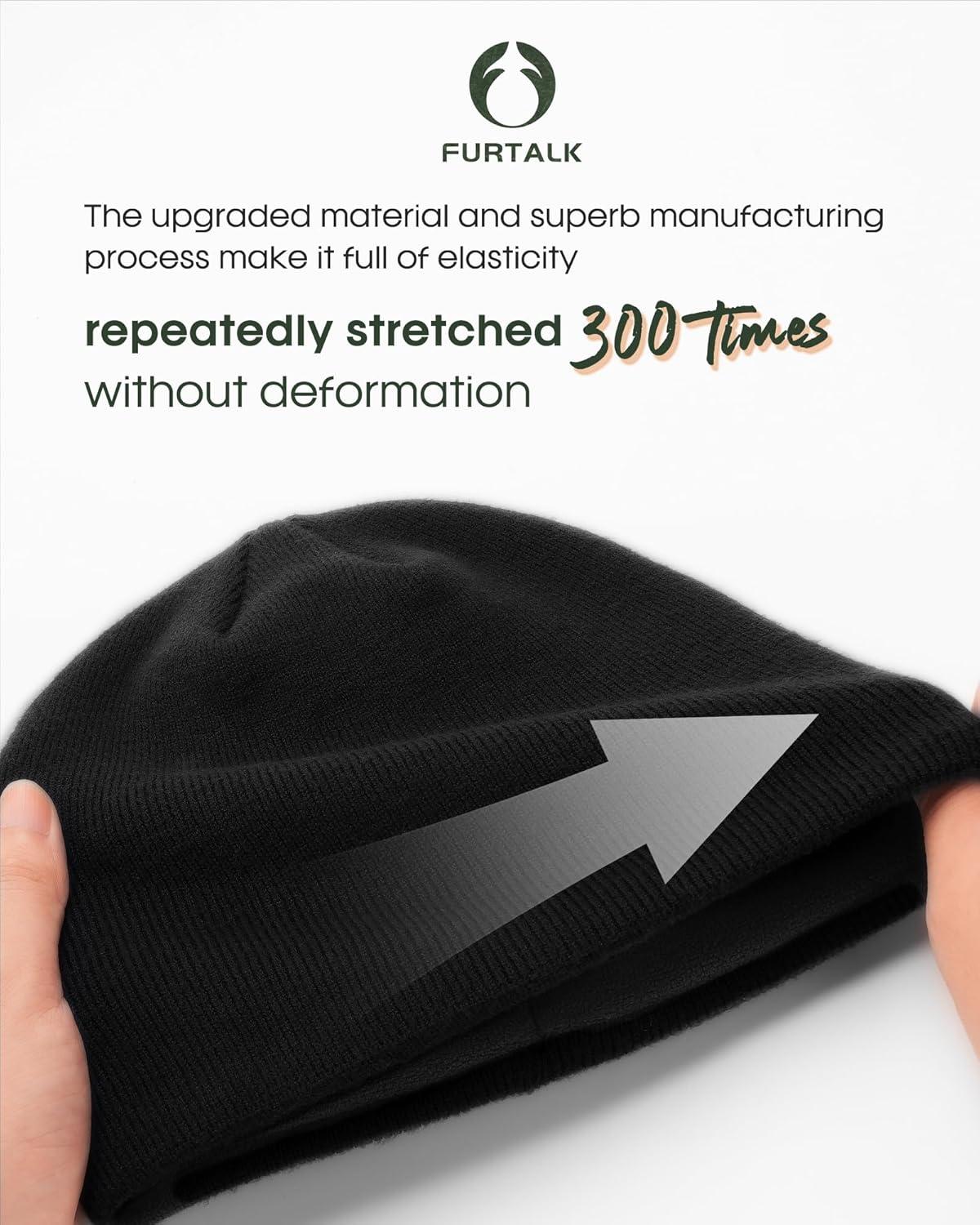 FURTALK Winter Beanie Hat Men Women Fleece Lining Winter Hats Windproof Knitted Warm Stretchable Cuffless Beanie(Black)