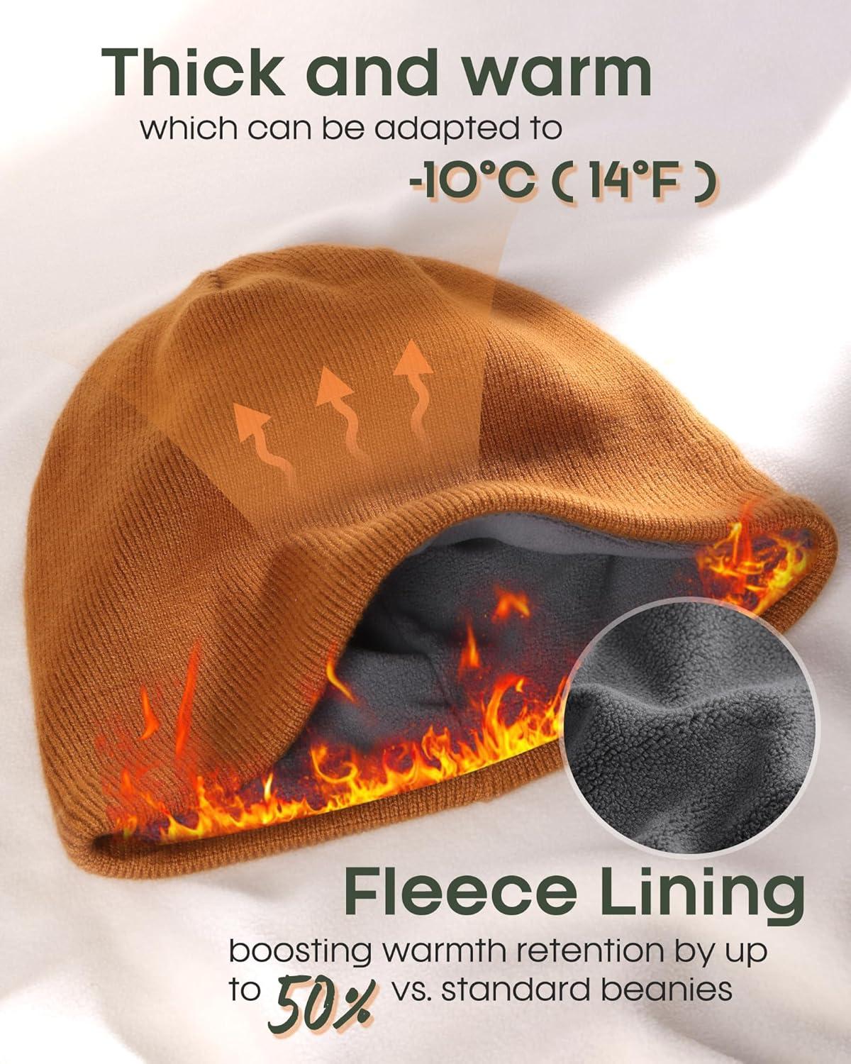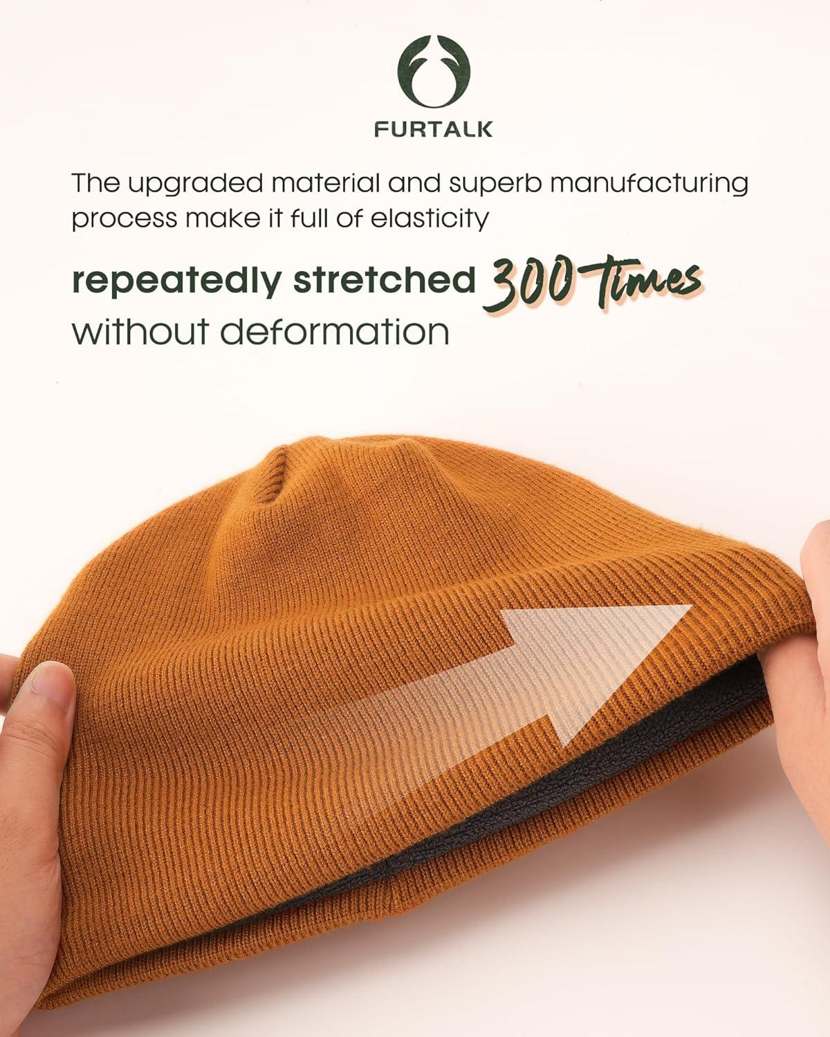 FURTALK Winter Beanie Hat Men Women Fleece Lining Winter Hats Windproof Knitted Warm Stretchable Cuffless Beanie(Brown)