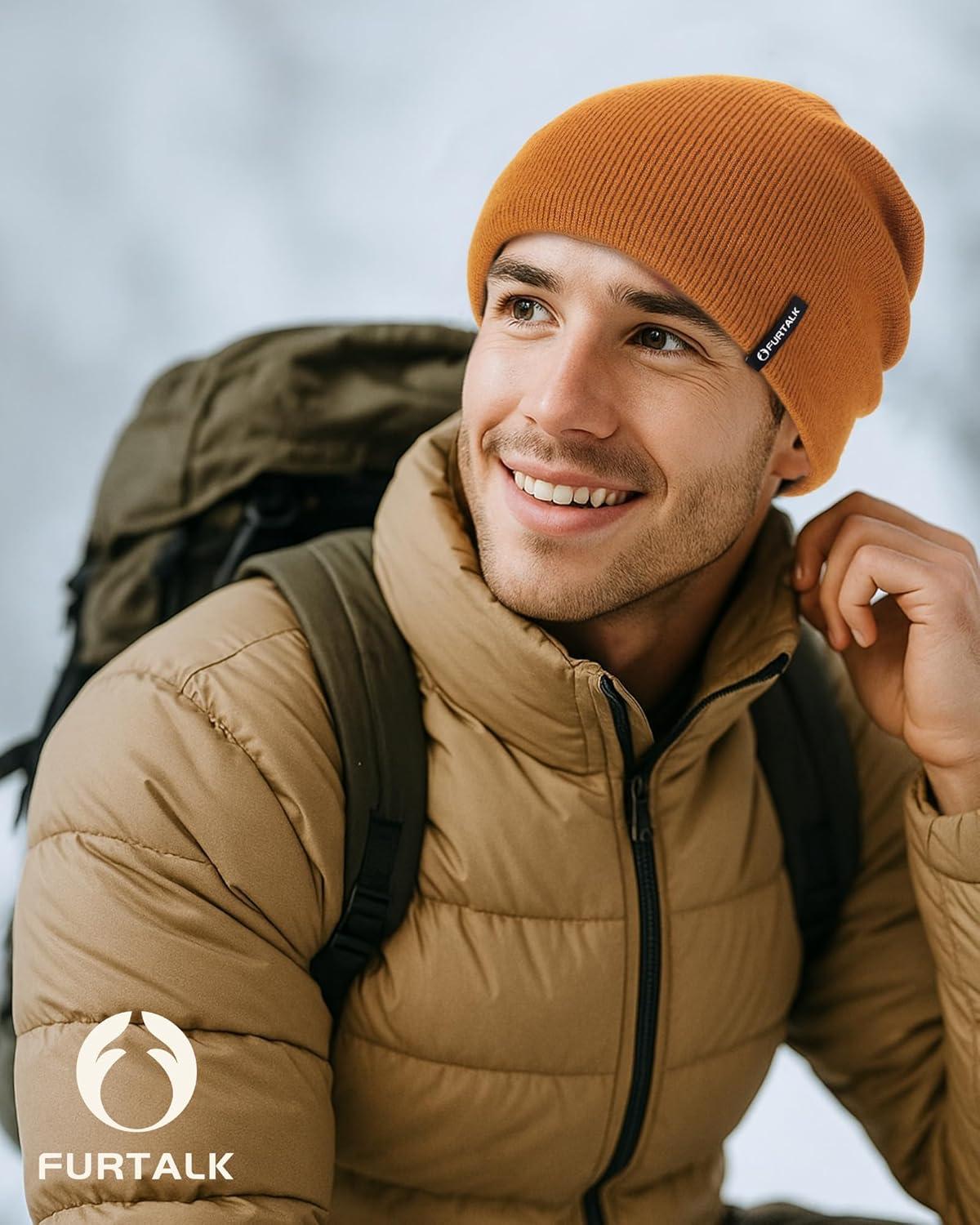 FURTALK Winter Beanie Hat Men Women Fleece Lining Winter Hats Windproof Knitted Warm Stretchable Cuffless Beanie(Black)