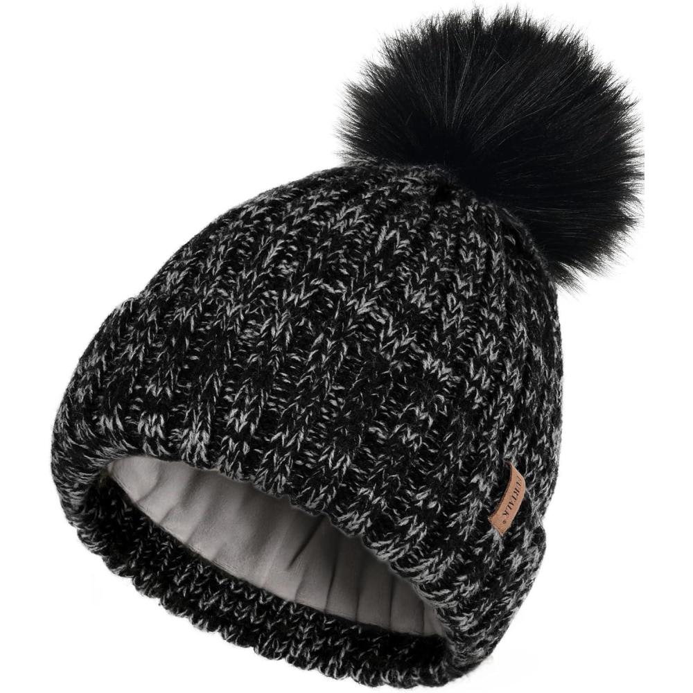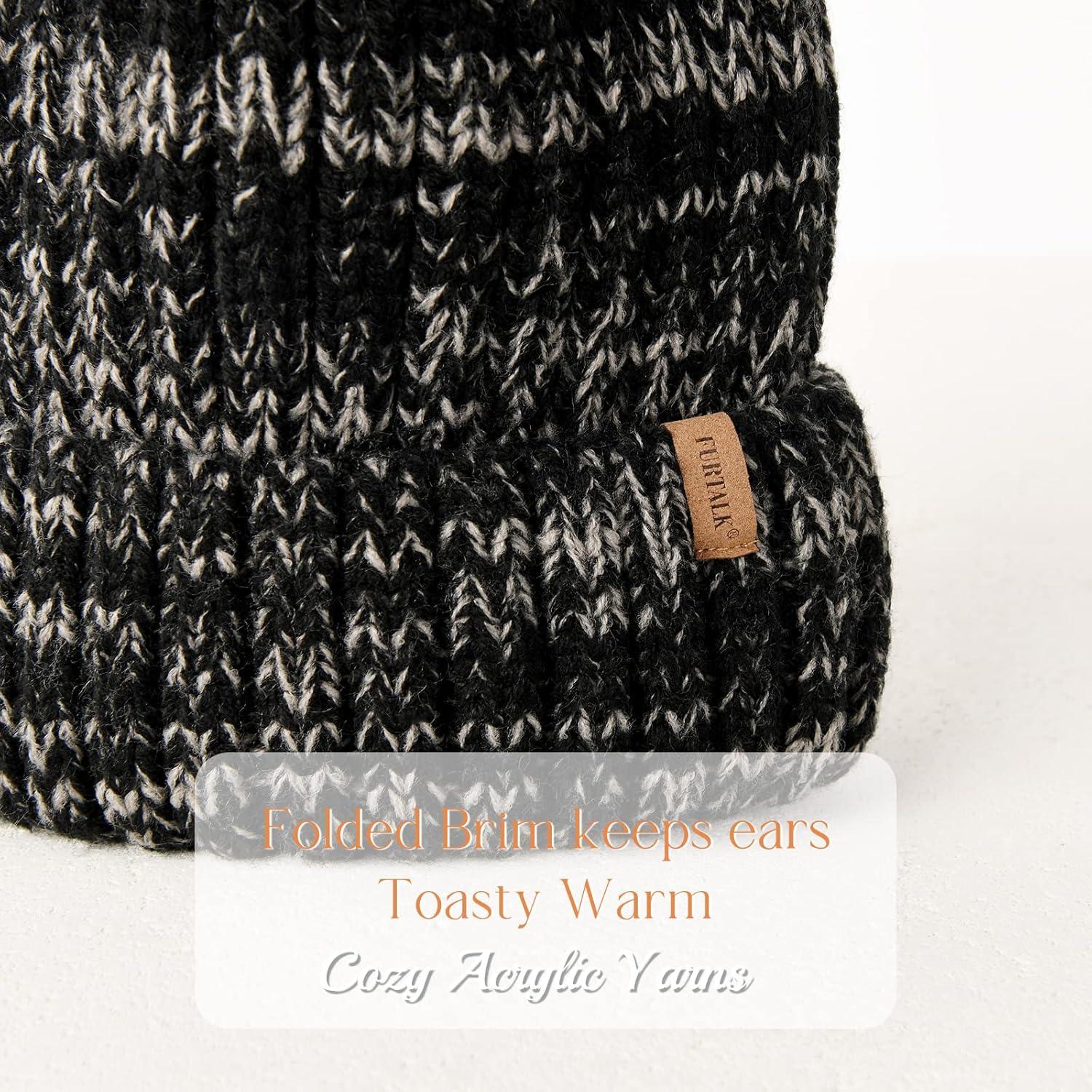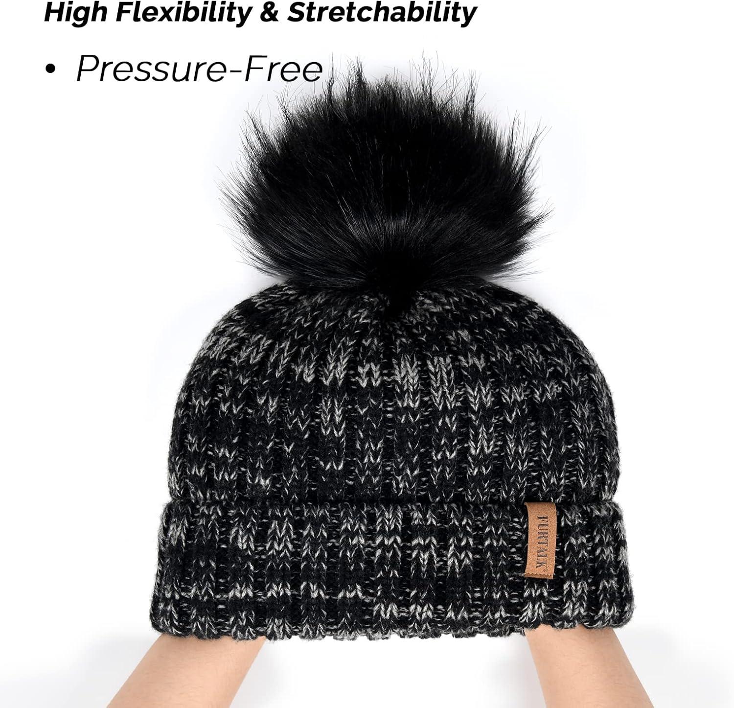 FURTALK Winter Beanie Hats for Women Fleece Lined Pom Pom Knitted Warm Beanie Caps(13-black Gray)