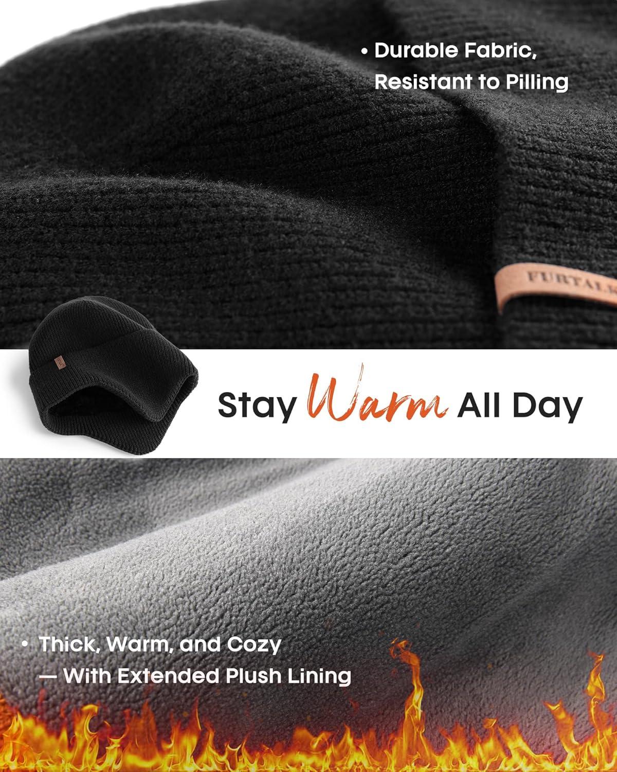 FURTALK Winter Beanie Hats with Earflap for Men Warm Fleece Line Knitted Outdoor Caps(Black)