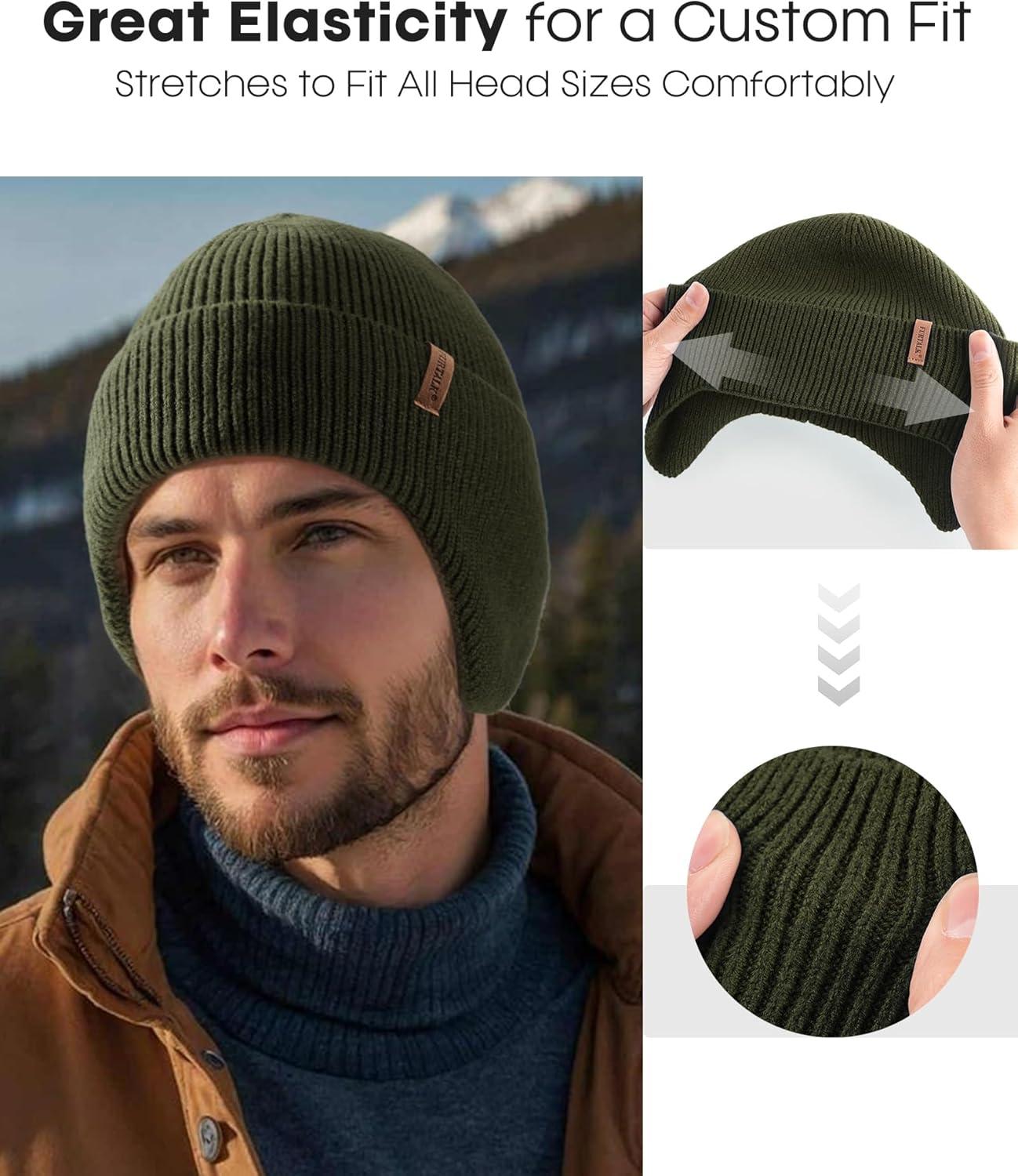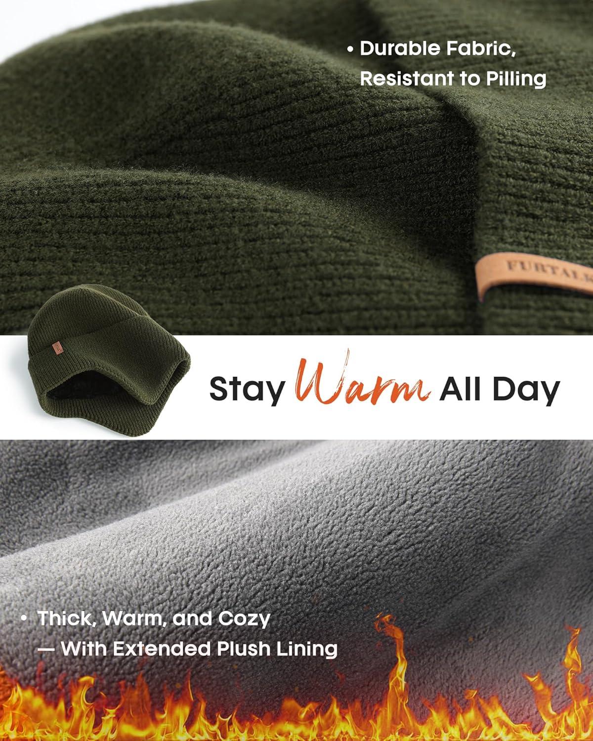 FURTALK Winter Beanie Hats with Earflap for Men Warm Fleece Line Knitted Outdoor Caps(Green)