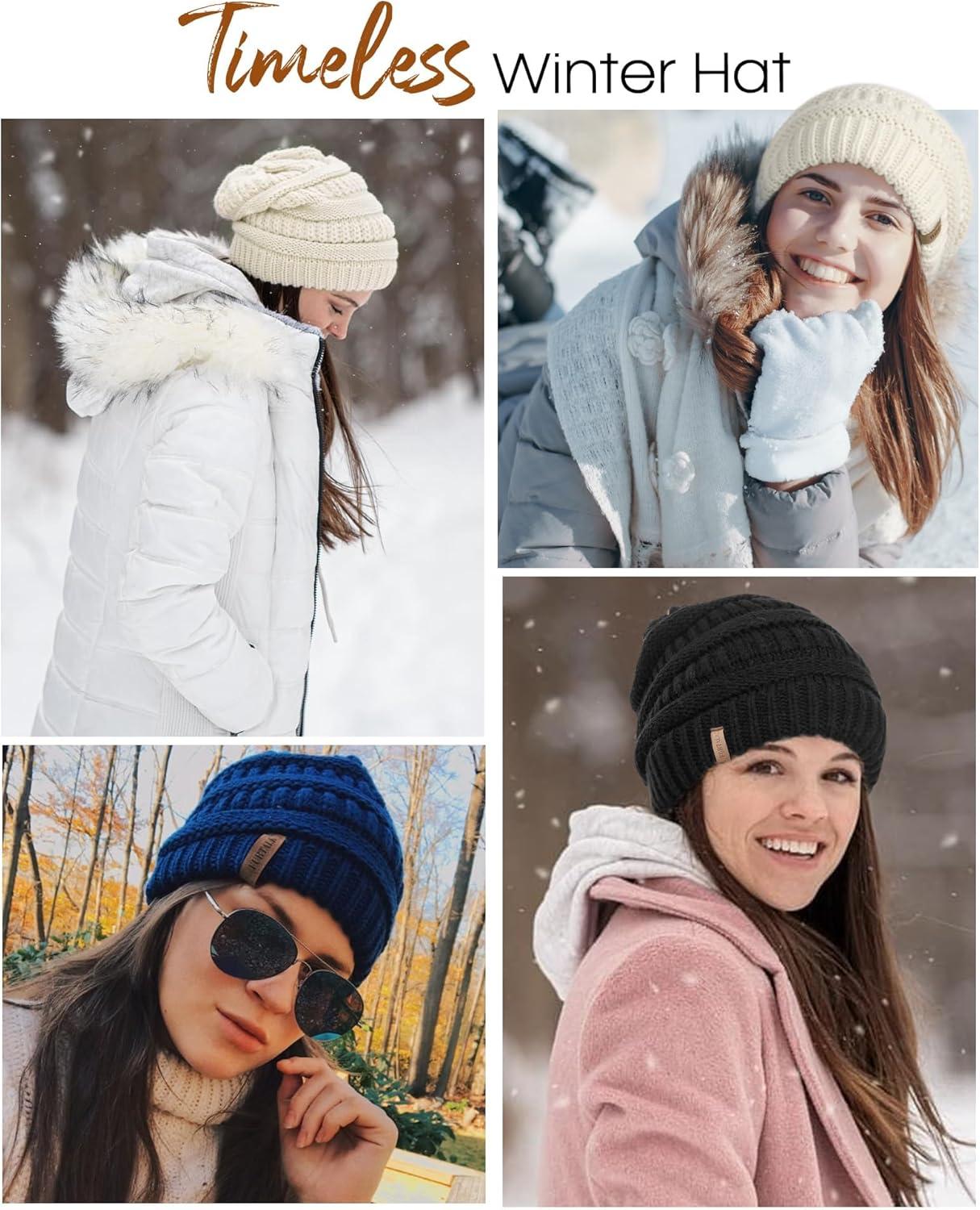 imageFURTALK Winter Hats for Women Fleece Lined Knit Beanie Hats Slouchy Warm Beanies Ski Skull CapBeige