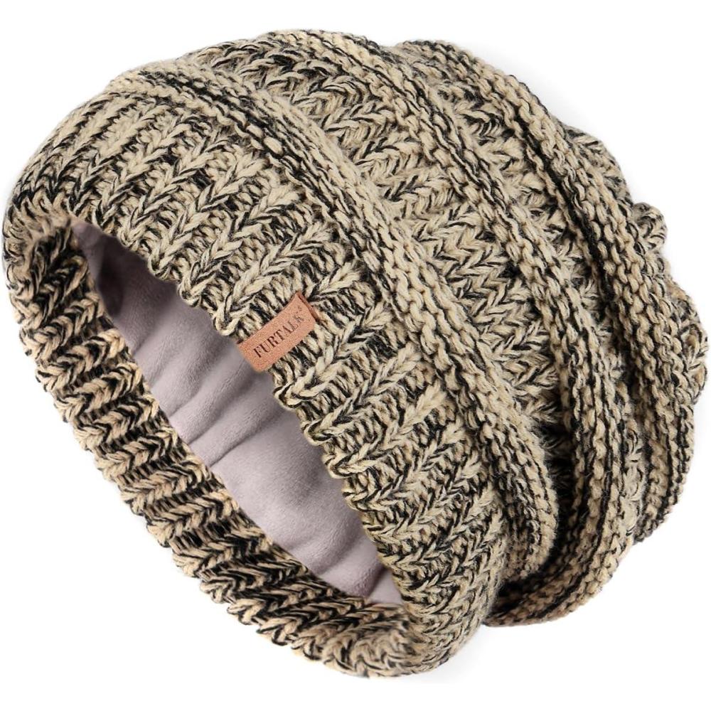 FURTALK Winter Hats for Women Fleece Lined Knit Beanie Hats Slouchy Warm Beanies Ski Skull Cap(3 Tone Beige/Black Mix)