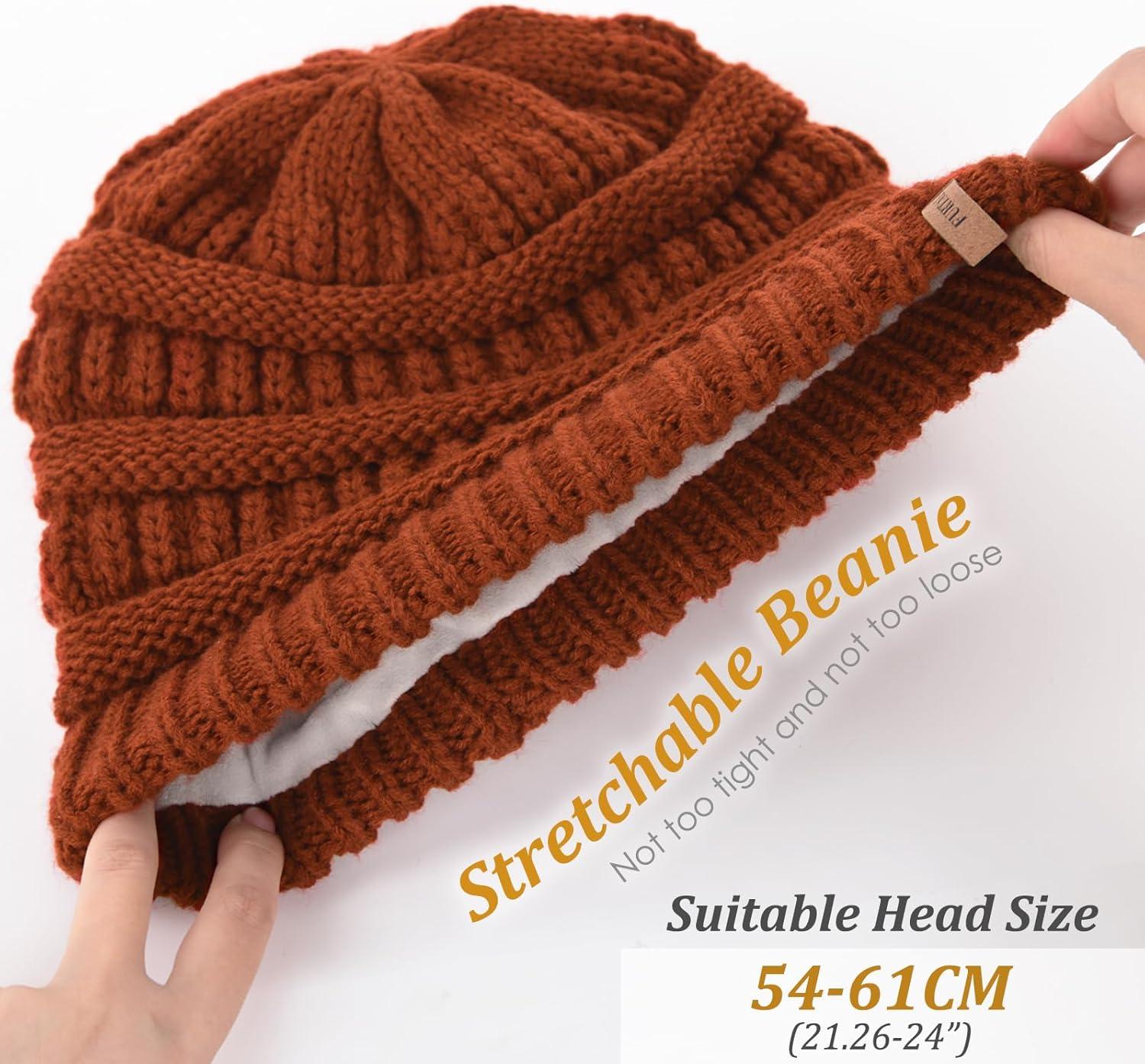 FURTALK Winter Hats for Women Fleece Lined Knit Beanie Hats Slouchy Warm Beanies Ski Skull Cap(Cramel-fleece Lining)