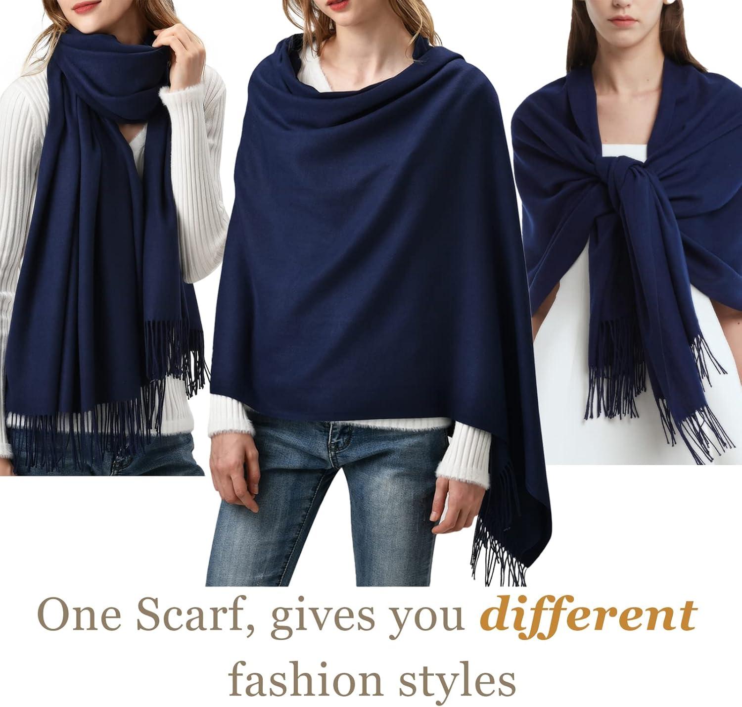 FURTALK Winter Scarf for Women Pashmina Shawl Wraps Cashmere Feel Warm Fashion Blanket Scarves Gifts(02-blue Navy)