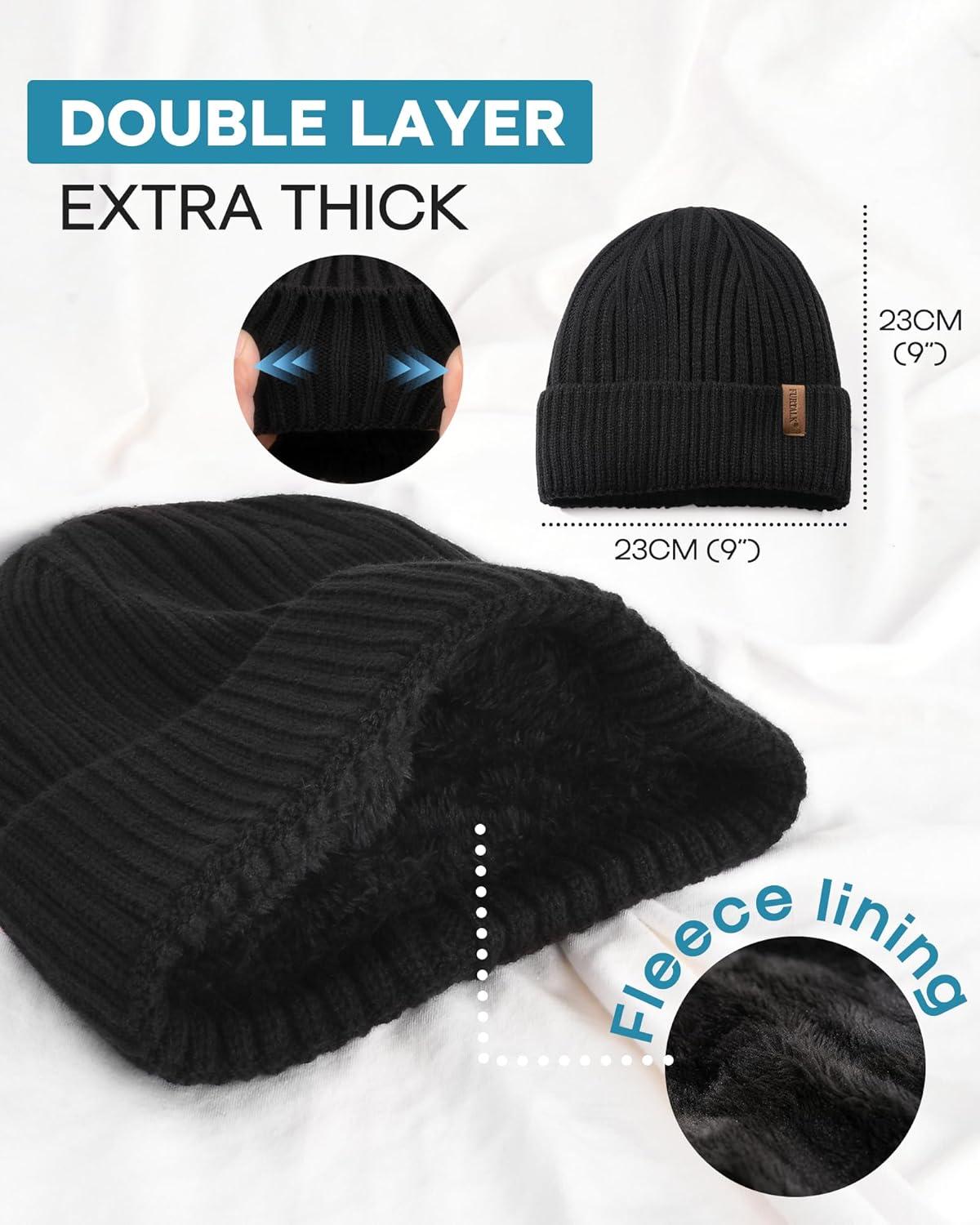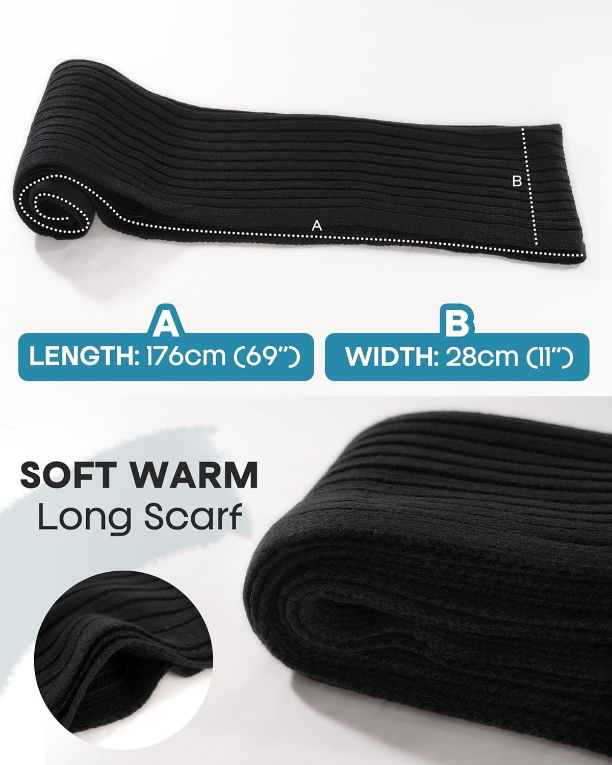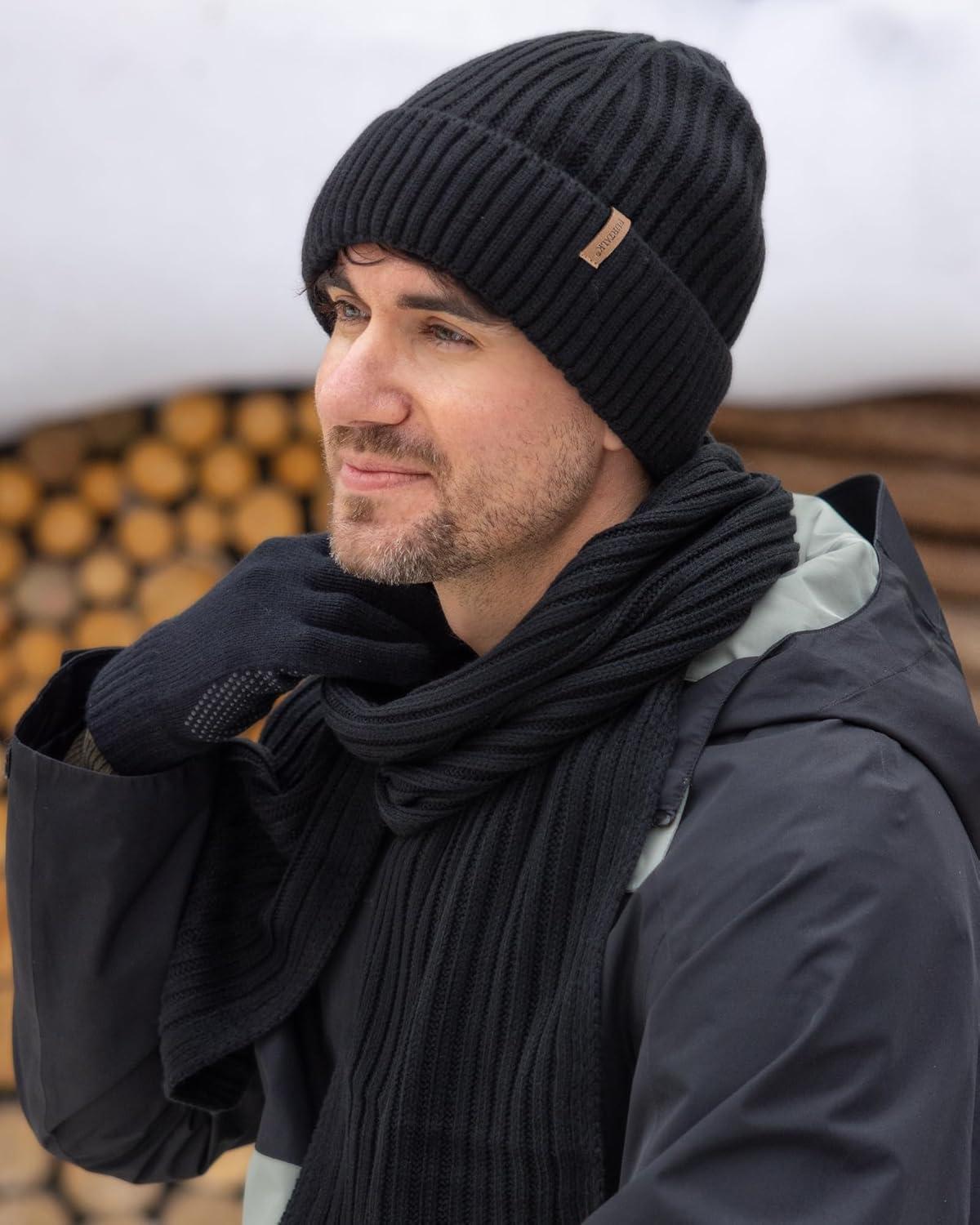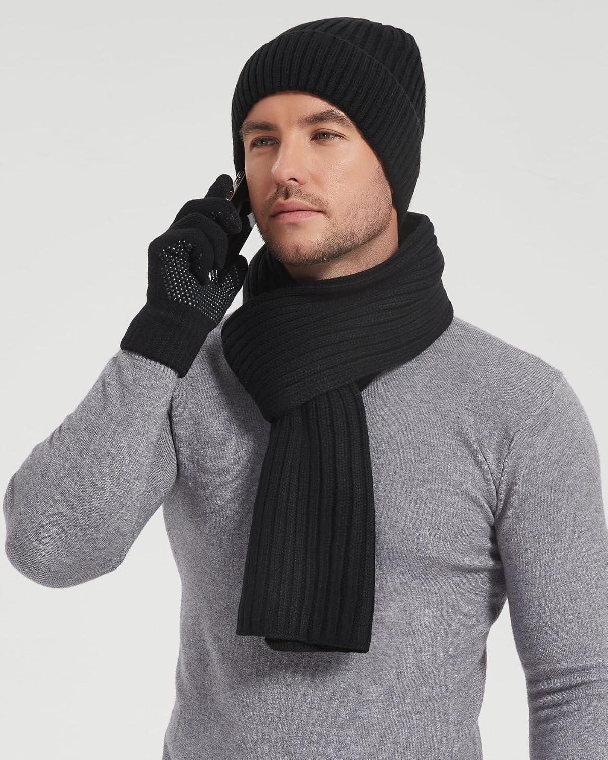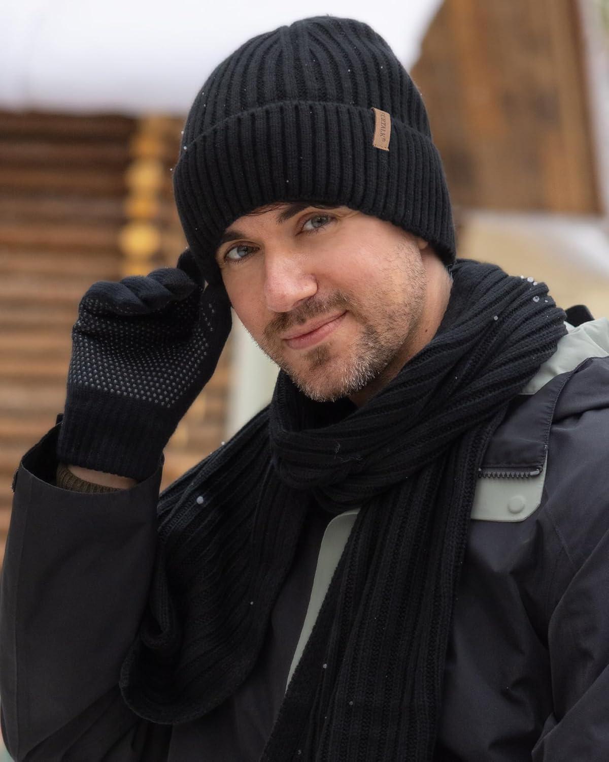 FURTALK Winter Warm Knit Beanie Hat Long Scarf Touchscreen Gloves Set Fleece Lined Skull Cap for Men Women(Black)