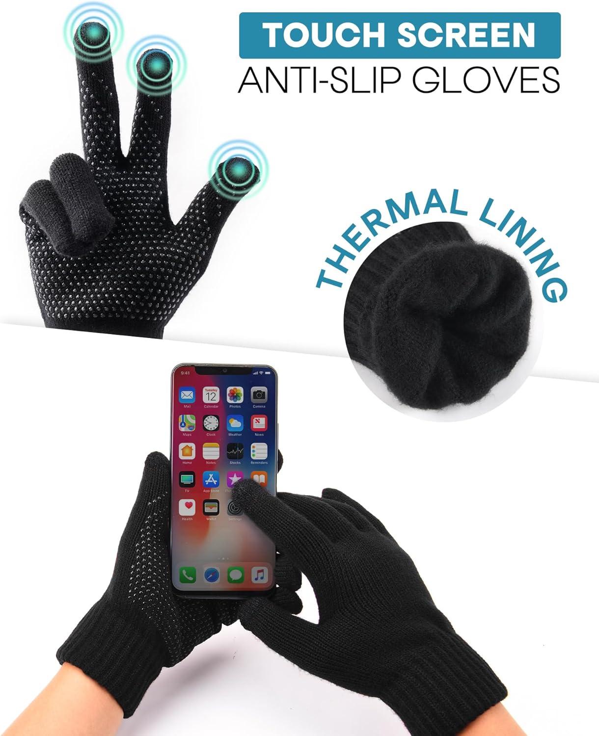 imageFURTALK Winter Warm Knit Beanie Hat Long Scarf Touchscreen Gloves Set Fleece Lined Skull Cap for Men WomenGrey