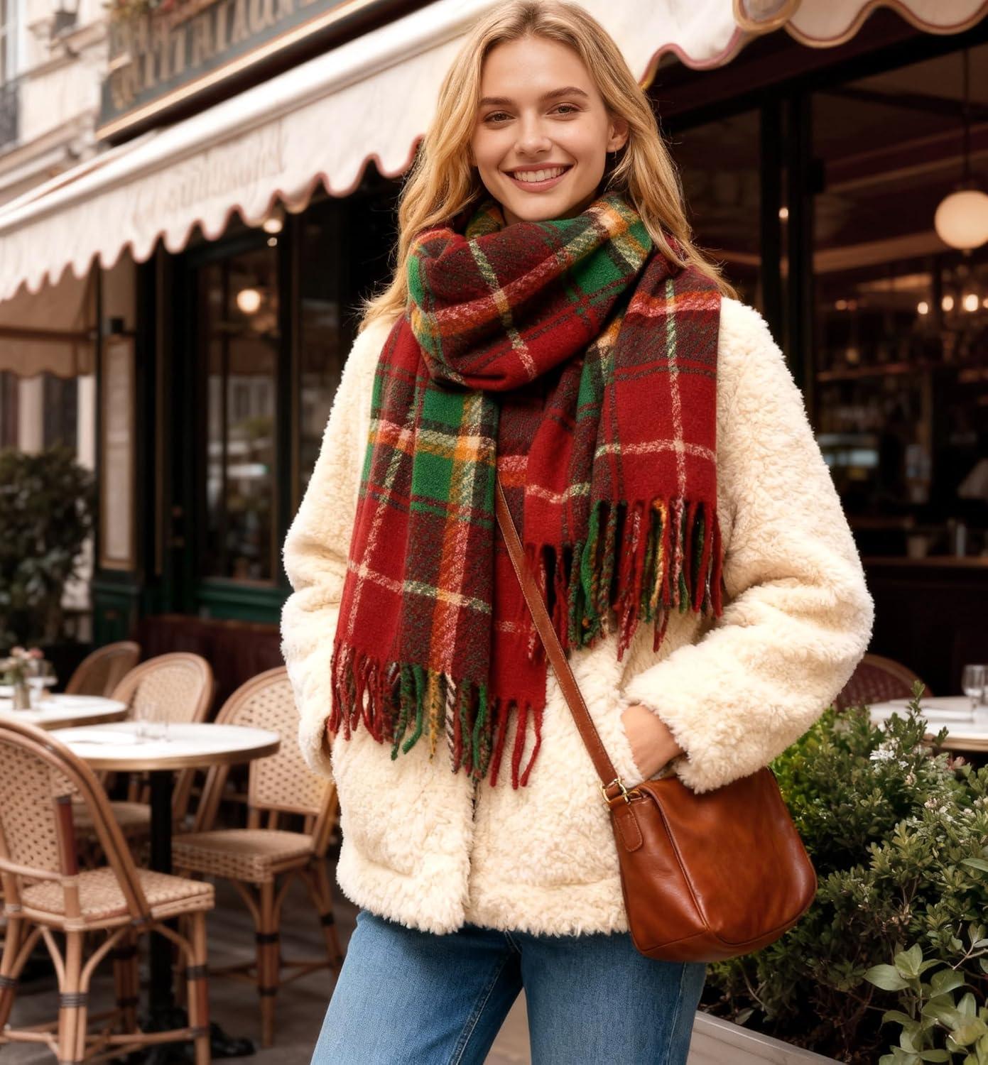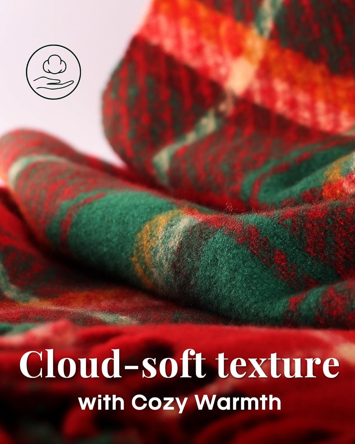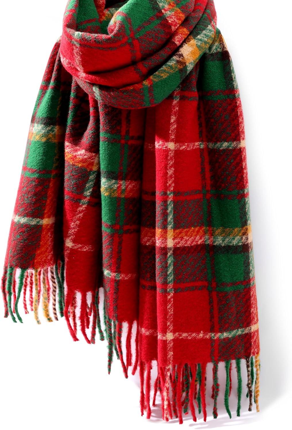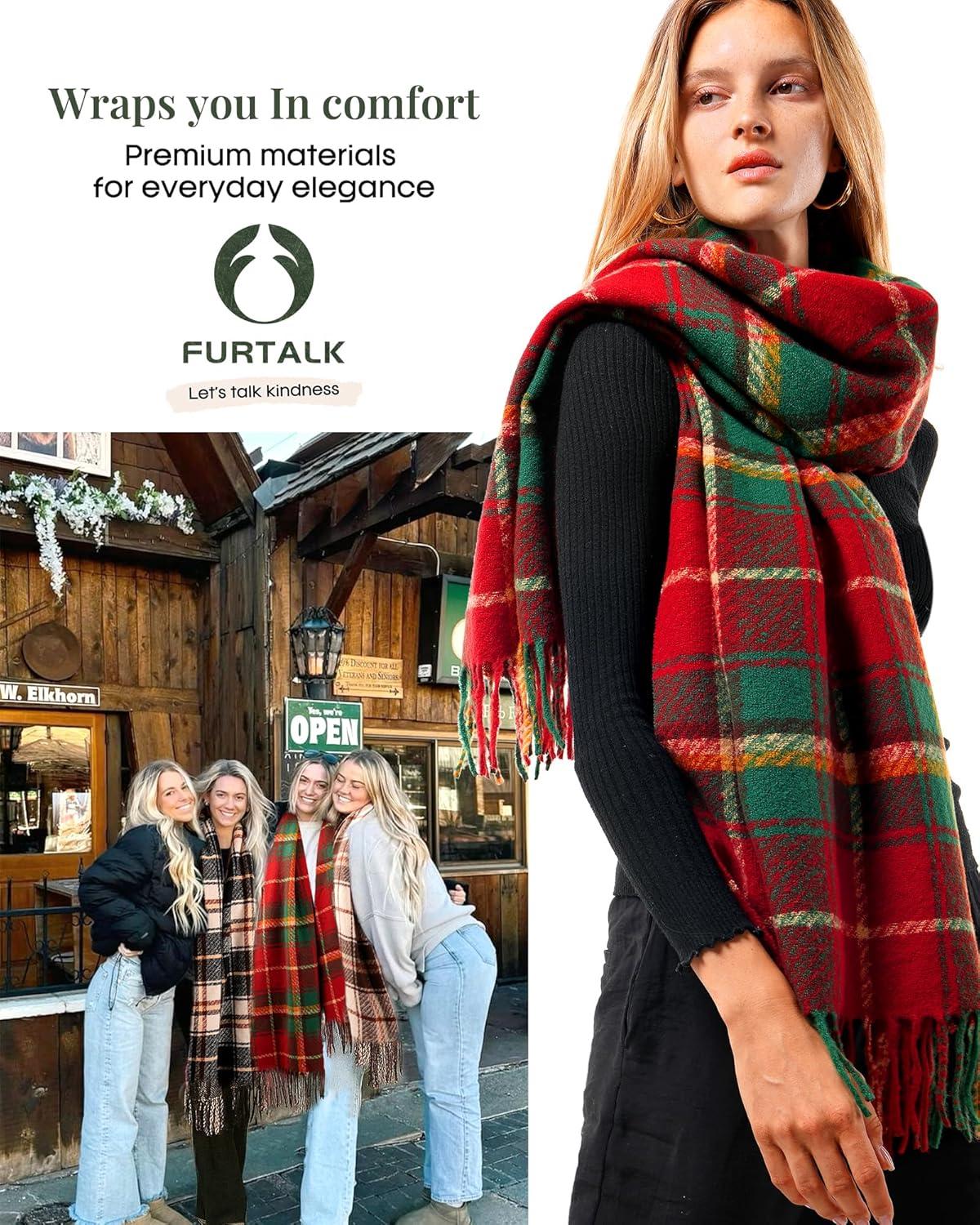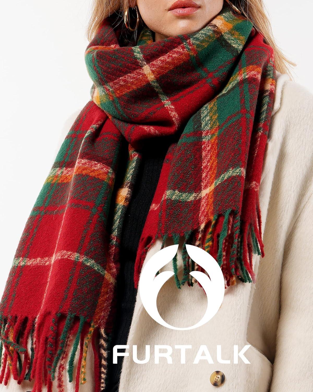 FURTALK Winter Warm Scarf for Women Cashmere Feel Shawl Wraps Tassel Plaid Oversized Scarves(Red)