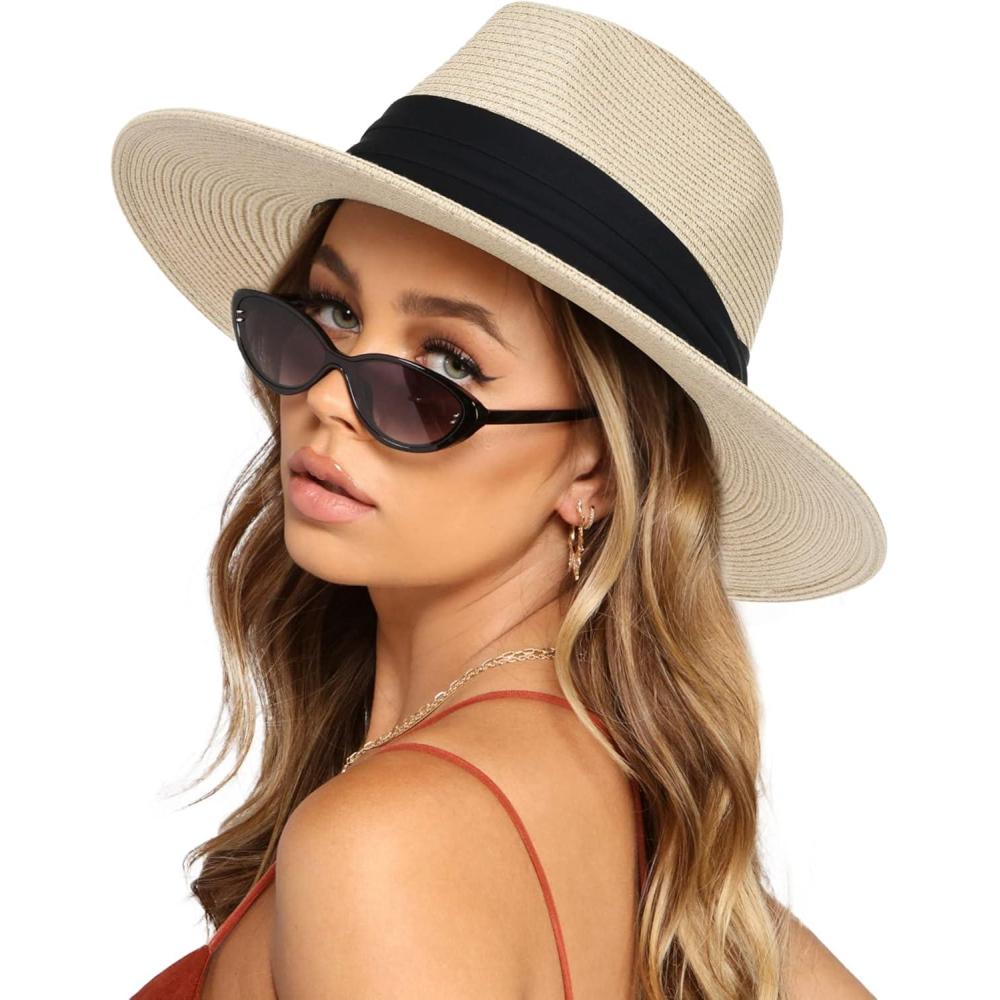 FURTALK Womens Mens Wide Brim Straw Panama Hat Fedora Summer Beach Sun Hats UPF Straw Hat for Women(Ab-beige)