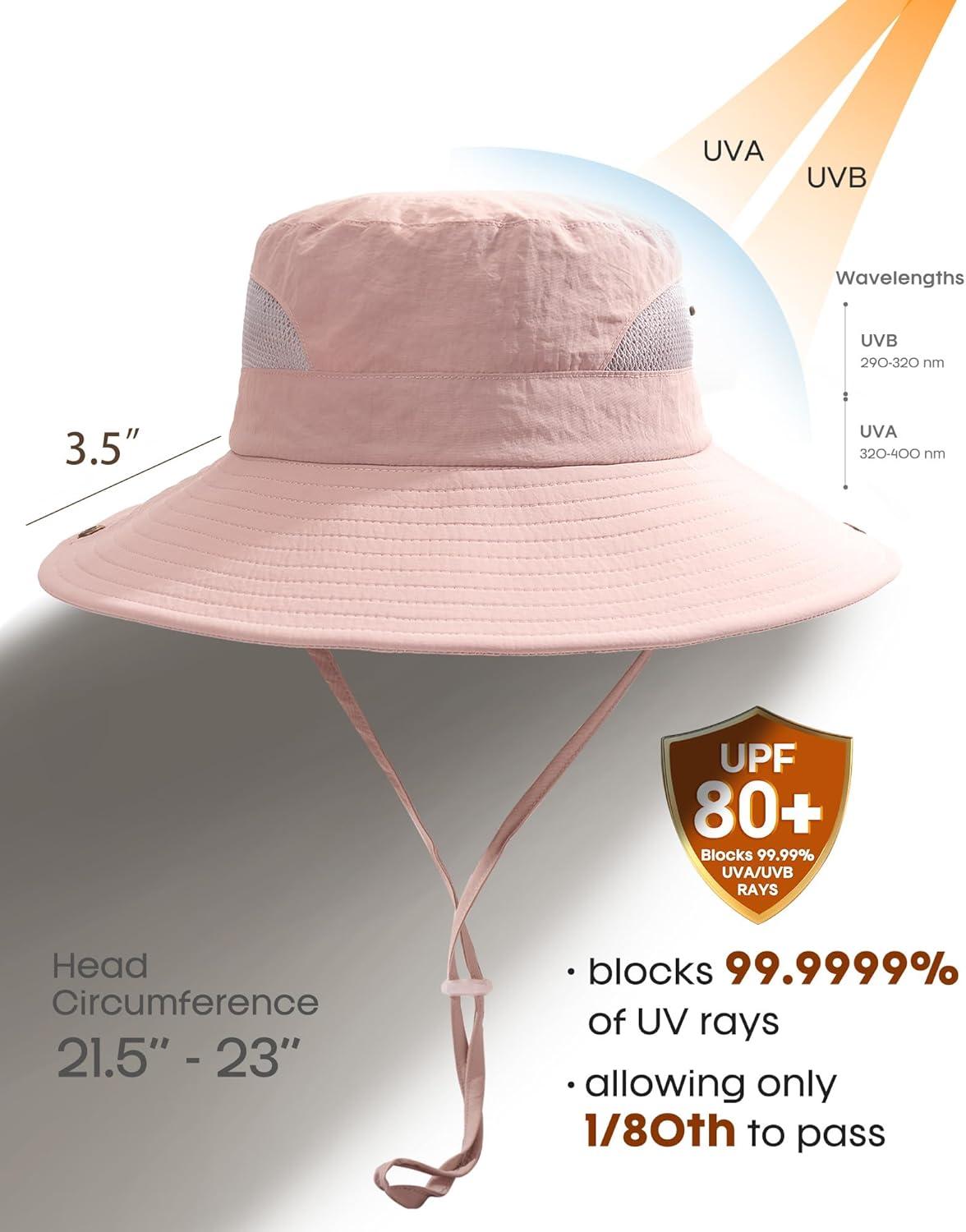 FURTALK Womens Sun Hat with Ponytail Hole Beach Hiking Summer Wide Brim UPF 80+ Outdoor Protection Foldable Bucket Hat(Pink-grey)