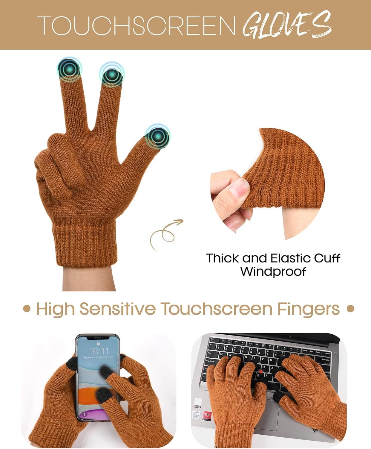 imageFURTALK Womens Winter Hat Gloves Scarf Set Fleece Knit Pom Beanie Warm Neck Warmer Touchscreen Gloves 3 in 1 Gift SetCaramel