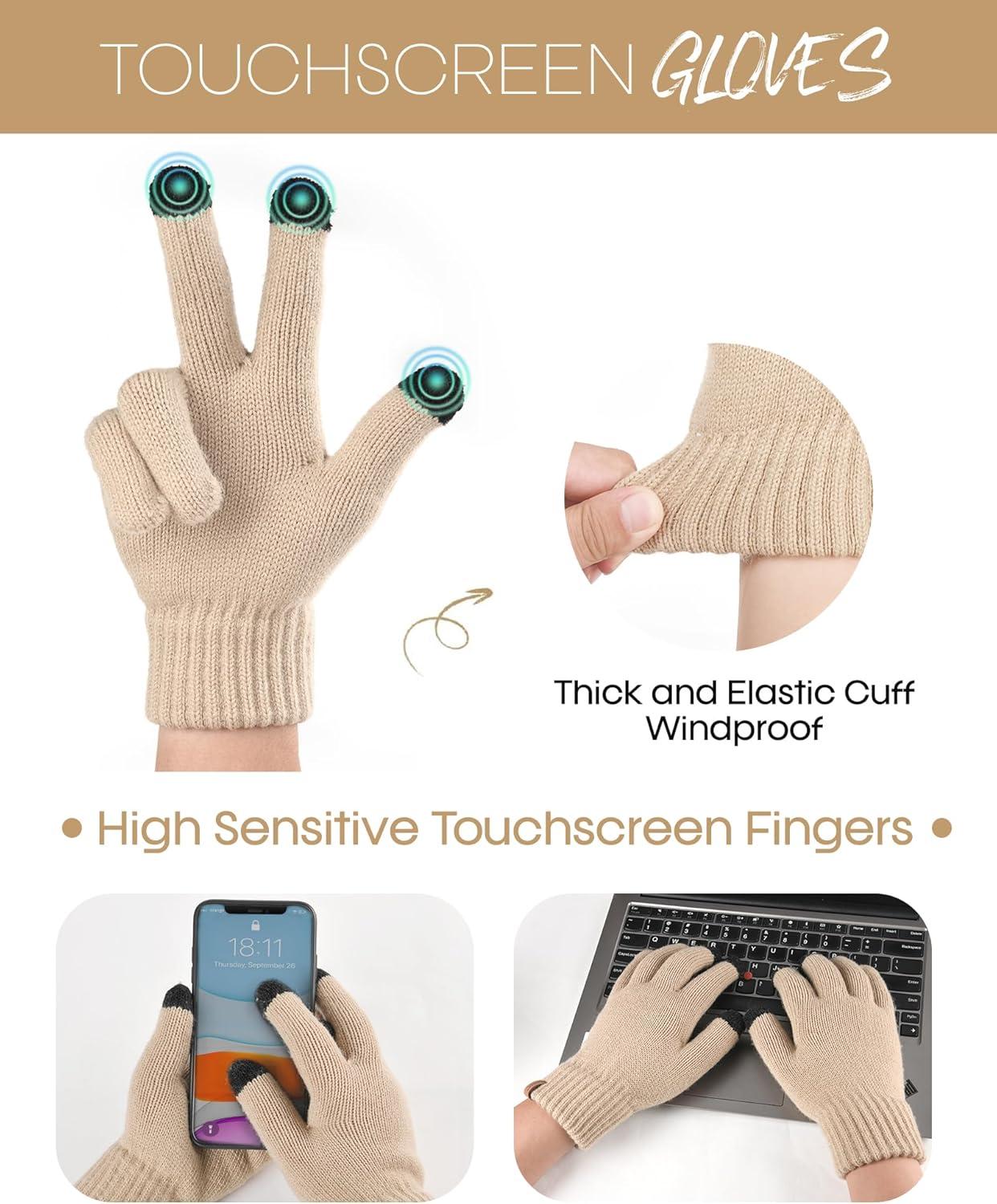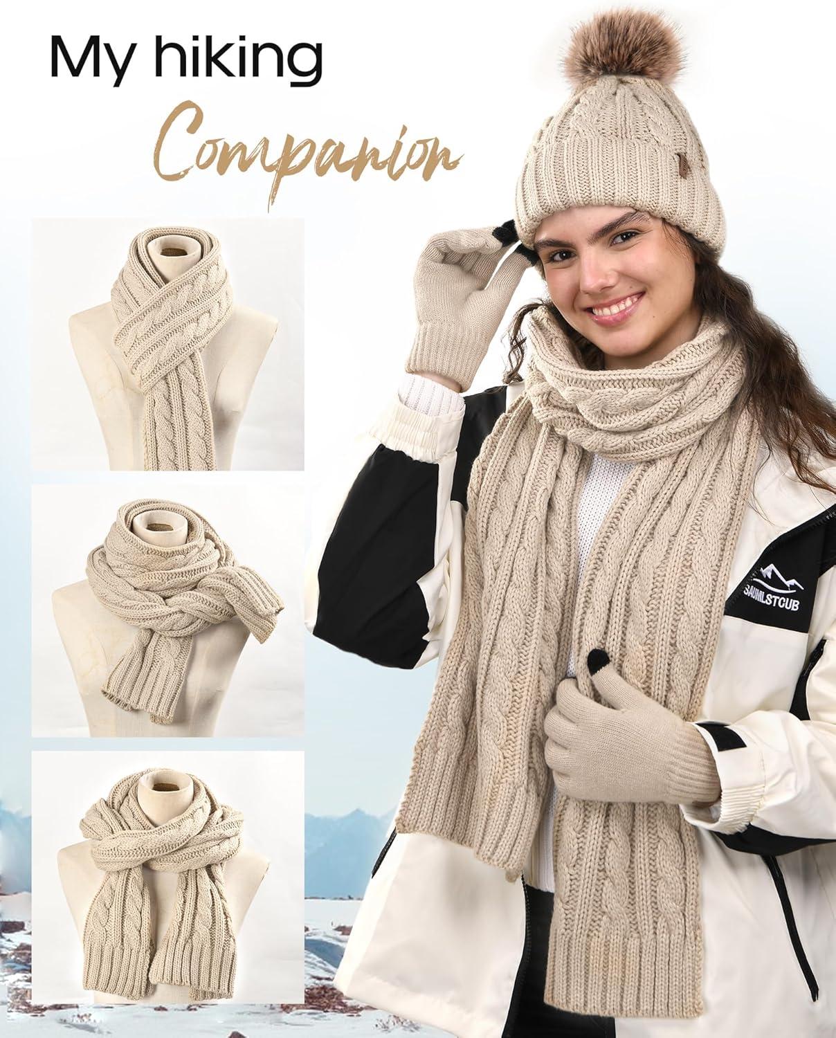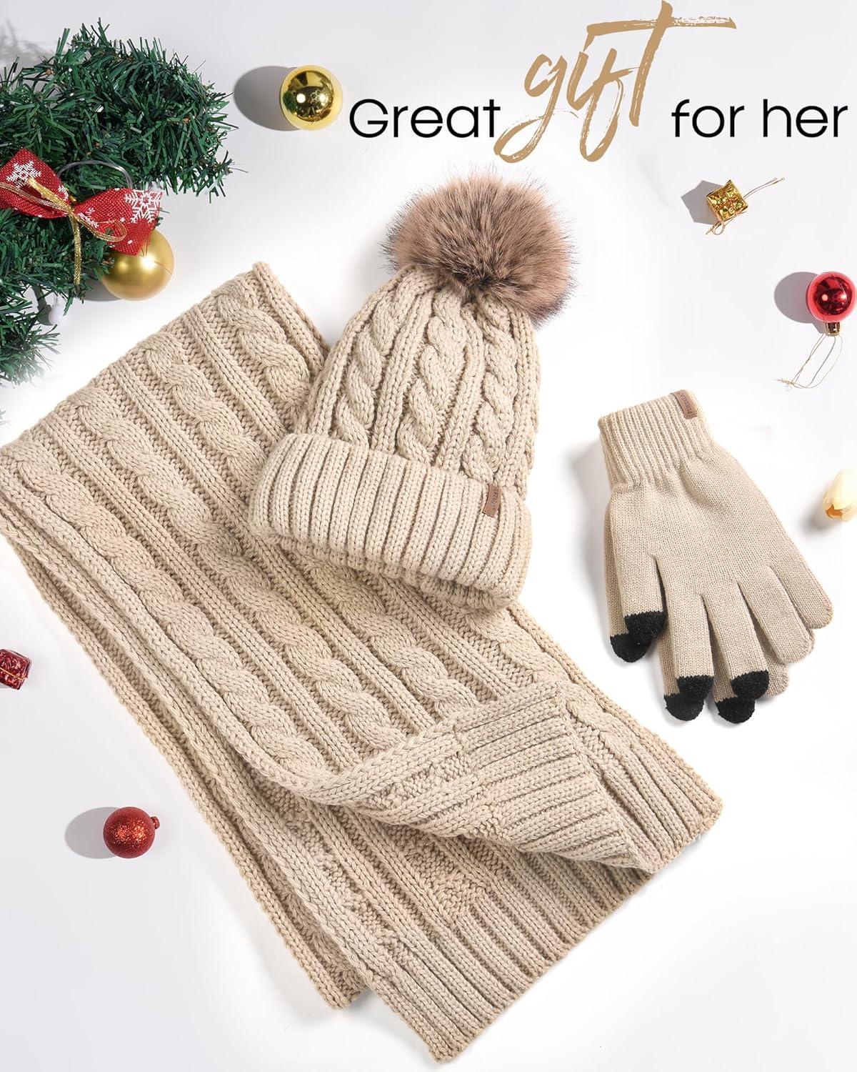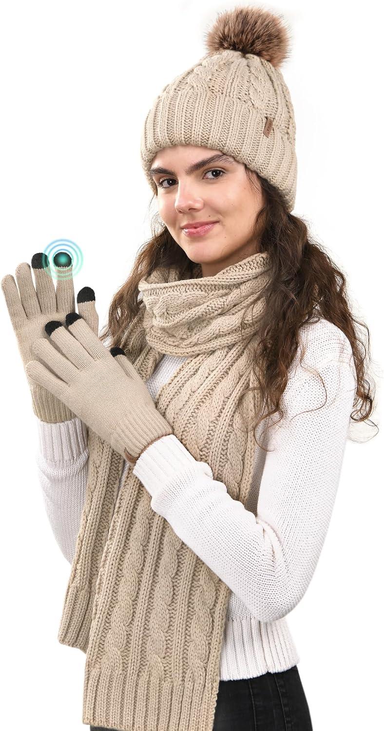 imageFURTALK Womens Winter Hat Gloves Scarf Set Gift Slouchy Beanie Touchscreen Gloves for WomenBeige