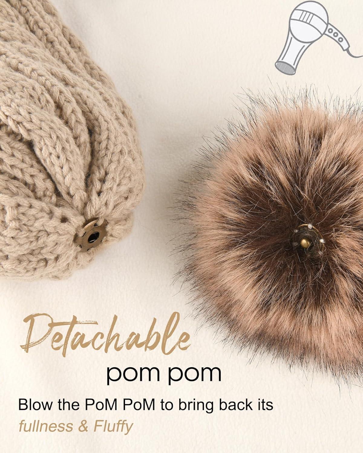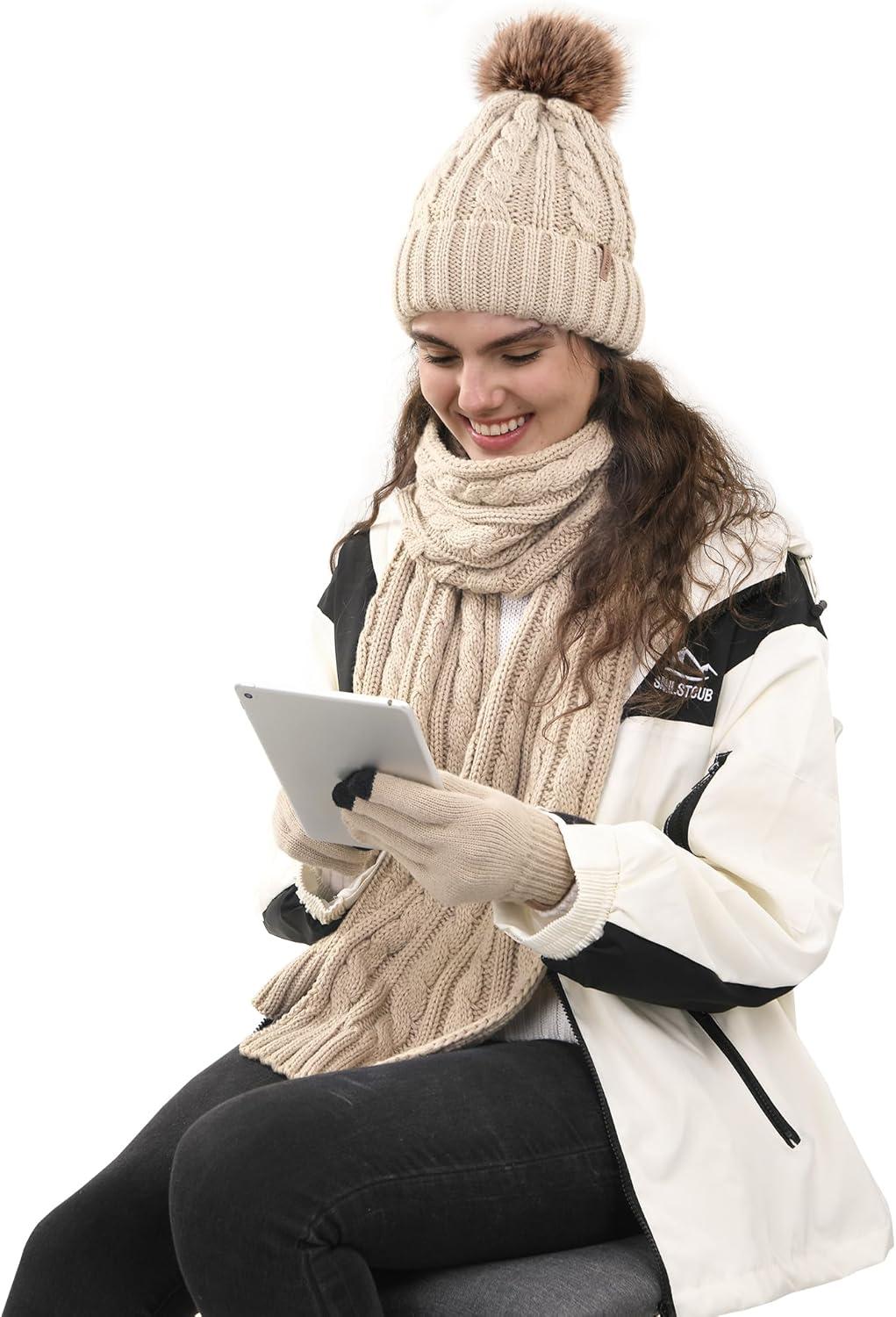 FURTALK Womens Winter Hat Gloves Scarf Set Fleece Knit Pom Beanie Warm Neck Warmer Touchscreen Gloves 3 in 1 Gift Set(Smoke Grey)