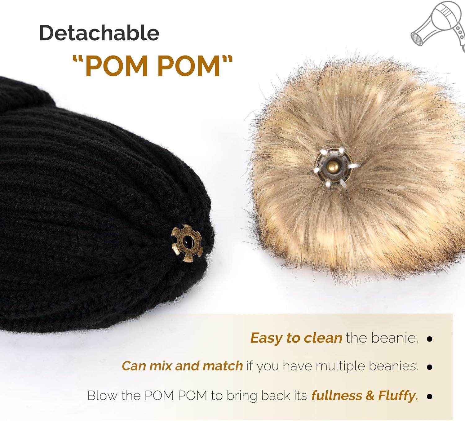 FURTALK Womens Winter Knitted Beanie Hat with Faux Fur Pom Warm Knit Skull Cap Beanie for Women(Black With Black Pom)