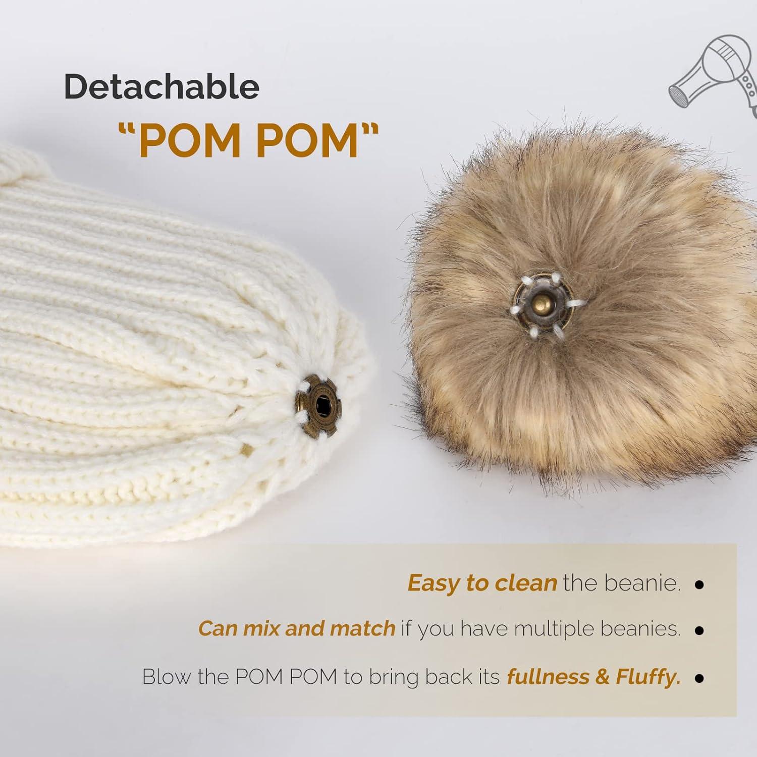 FURTALK Womens Winter Knitted Beanie Hat with Faux Fur Pom Warm Knit Skull Cap Beanie for Women(White With White Pom)