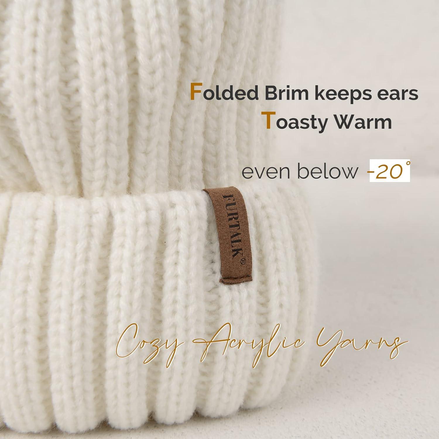 FURTALK Womens Winter Knitted Beanie Hat with Faux Fur Pom Warm Knit Skull Cap Beanie for Women(White)